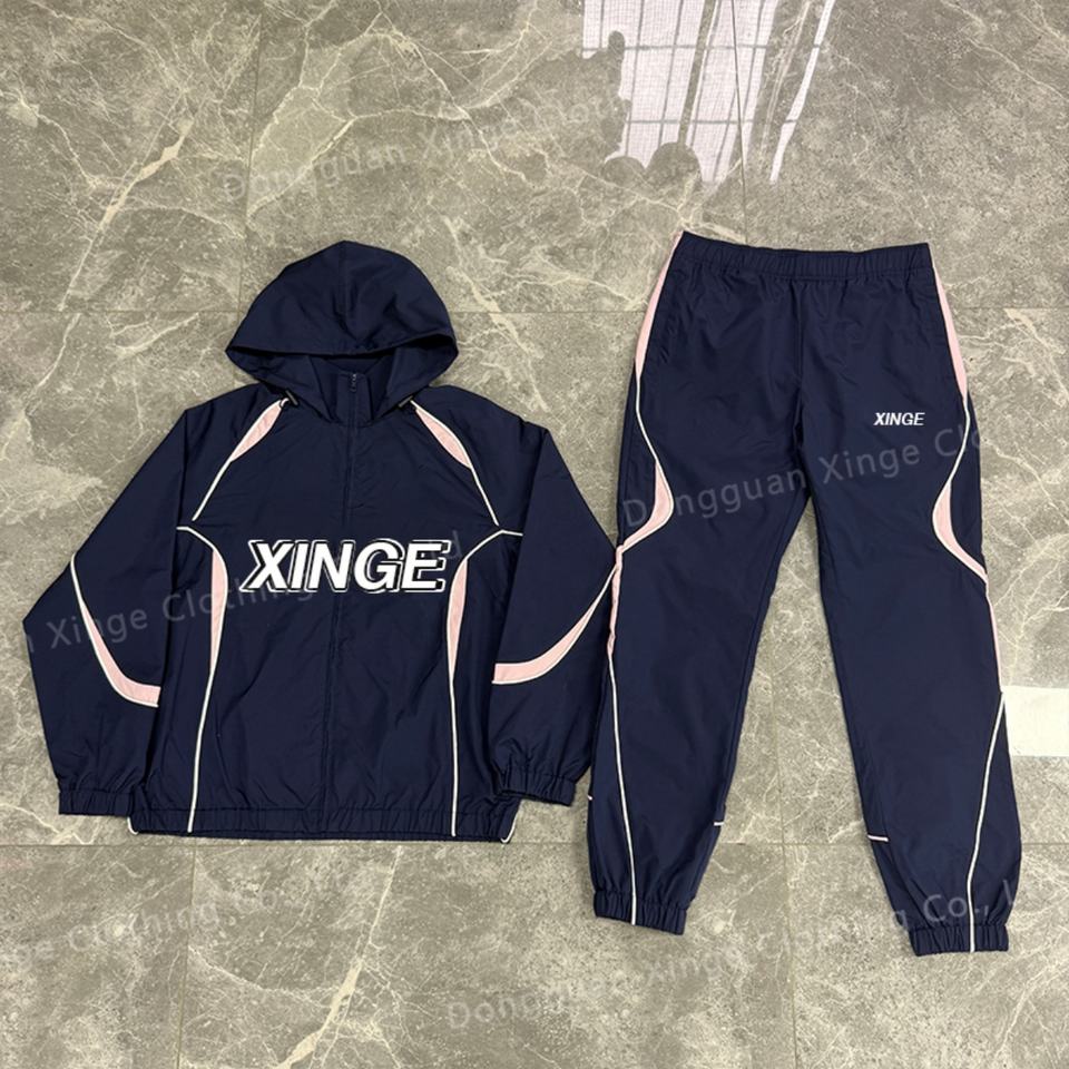 ชุดจ็อกเกอร์ผู้ชายไซส์ใหญ่ ระบายอากาศได้ดี สไตล์ไฮสตรีท ชุดสองชิ้น เสื้อแจ็คเก็ตซิปแบบต่อผ้า กางเกงขายาว มีเชือกผูกเอว น้ำหนักเบา สั่งทำได้