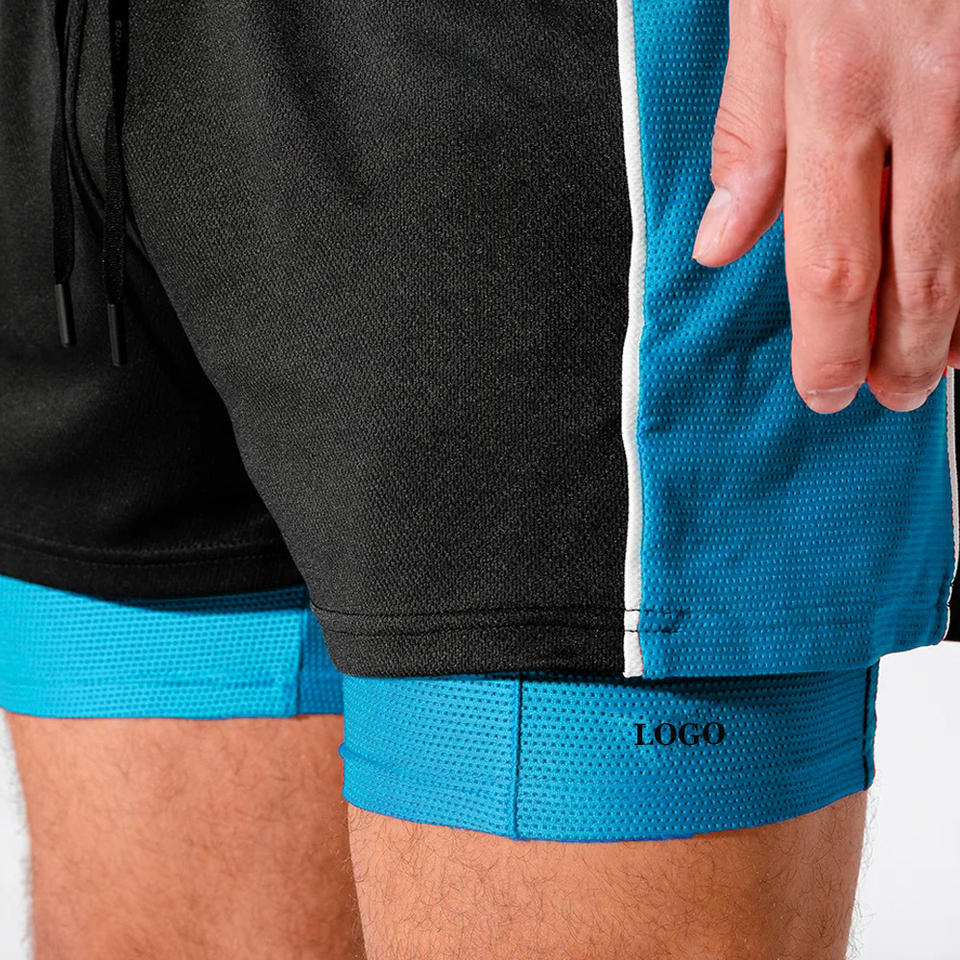 กางเกงขาสั้นกีฬาผู้ชาย โพลีเอสเตอร์ สำหรับวิ่ง ออกกำลังกาย ยืดหยุ่น แห้งเร็ว สไตล์อเมริกัน สองชั้น บาสเก็ตบอล OEM ฟิตเนส ลำลอง ความยาวปานกลาง