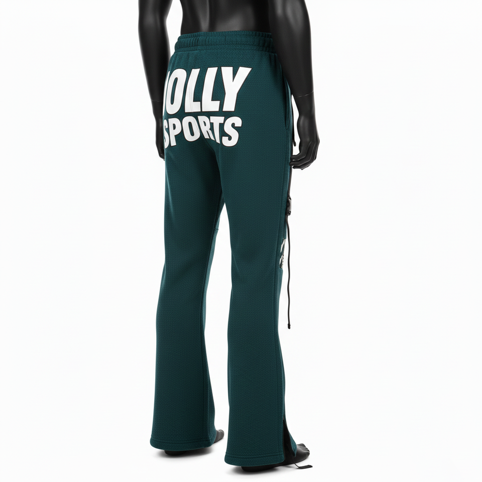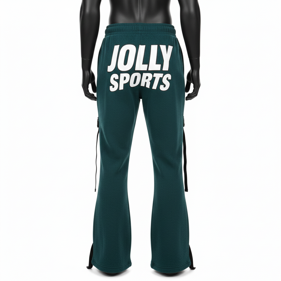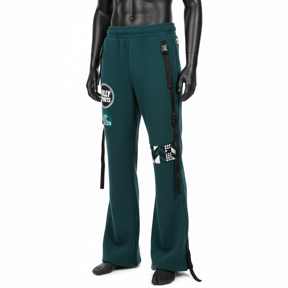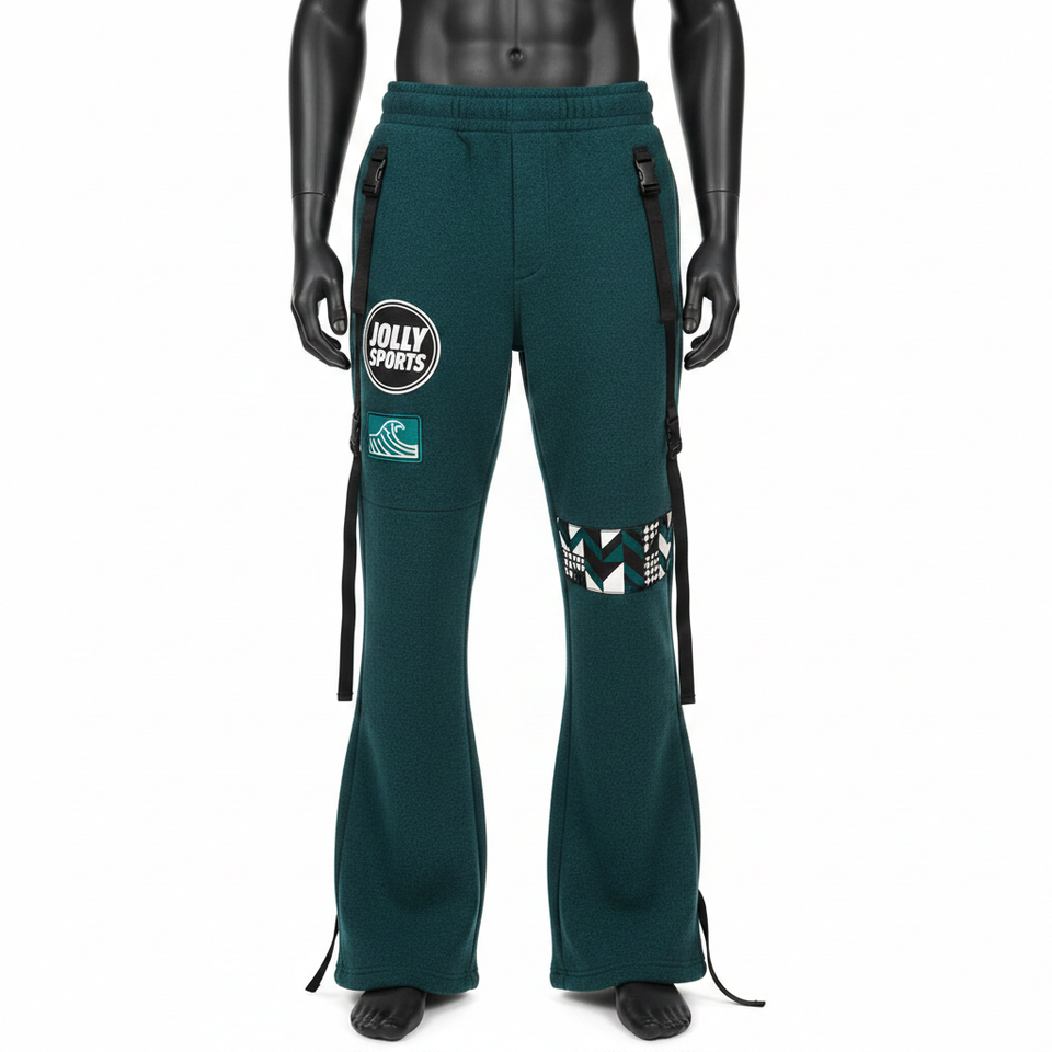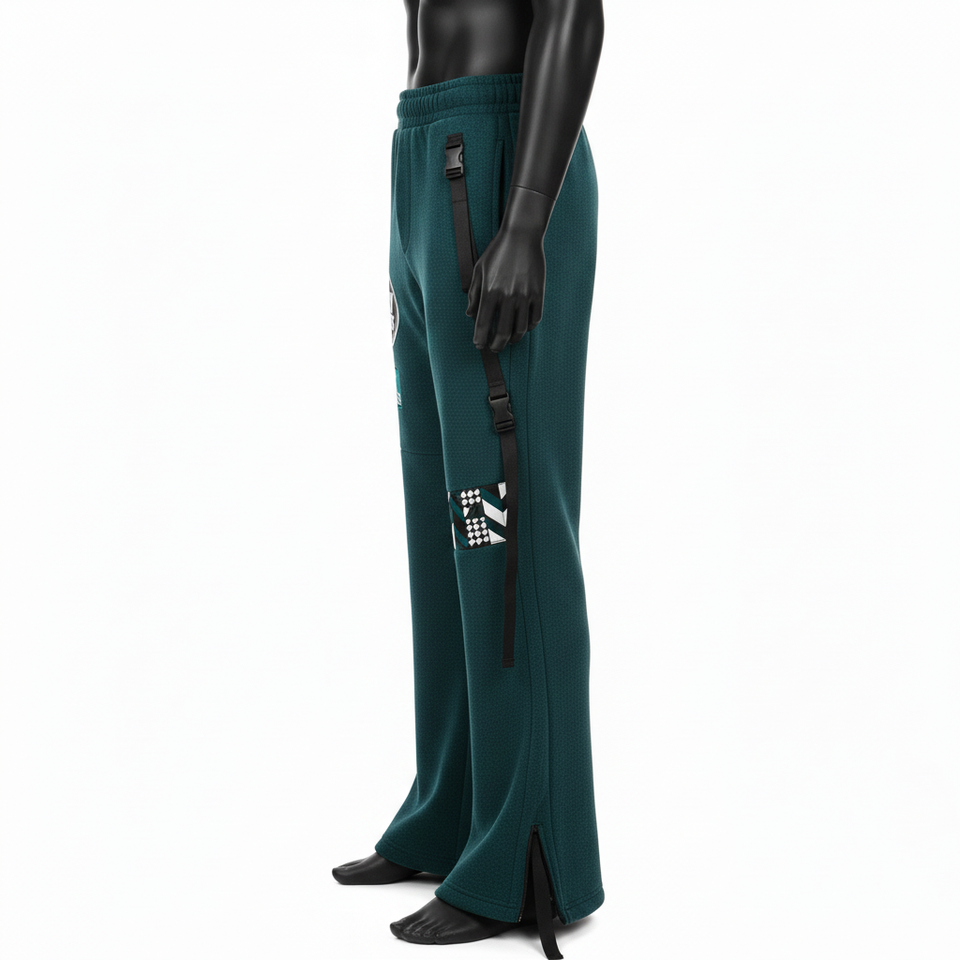 Men Premium Flare Pant Heavyweight Cotton Polyester Fleece 320 GSM Teal Side Panel Strap Heat Transfer Logo Men's Pant