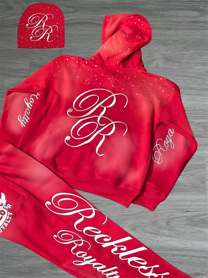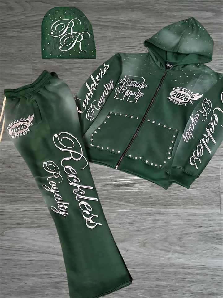 ชุดวอร์มผู้ชายคุณภาพพรีเมียม พิมพ์โลโก้ตามสั่ง กางเกงทรงบานสีซีดแบบซันเฟด พร้อมเสื้อฮู้ดและหมวกบีนนี่ ผ้าฝ้ายระบายอากาศ ลดราคา
