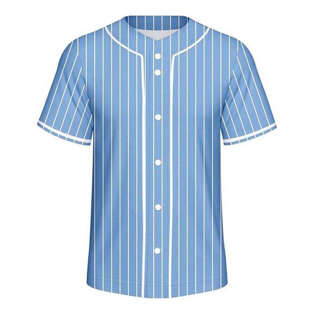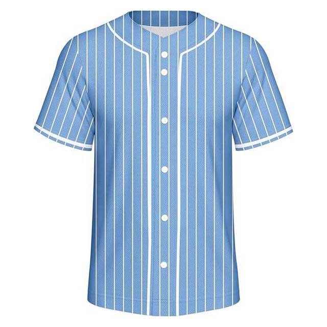 เสื้อซอฟต์บอลกีฬามืออาชีพสำหรับผู้ชายเสื้อเบสบอลเยาวชนเสื้อสแปนเด็กซ์โพลีเอสเตอร์ลายทางมีกระดุม