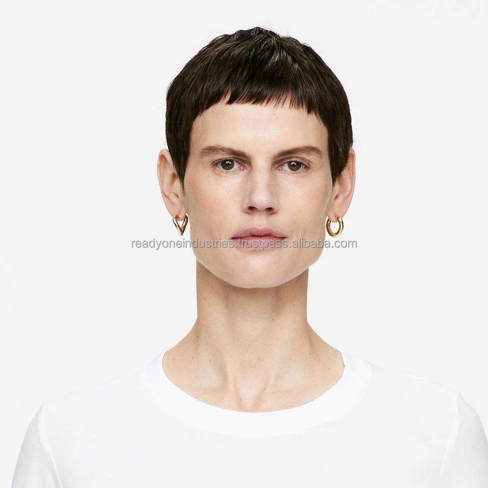 เสื้อยืดสตรีผ้าสักหลาดแขนปกติ