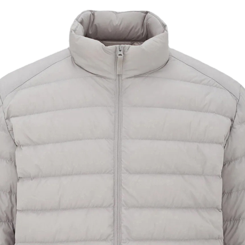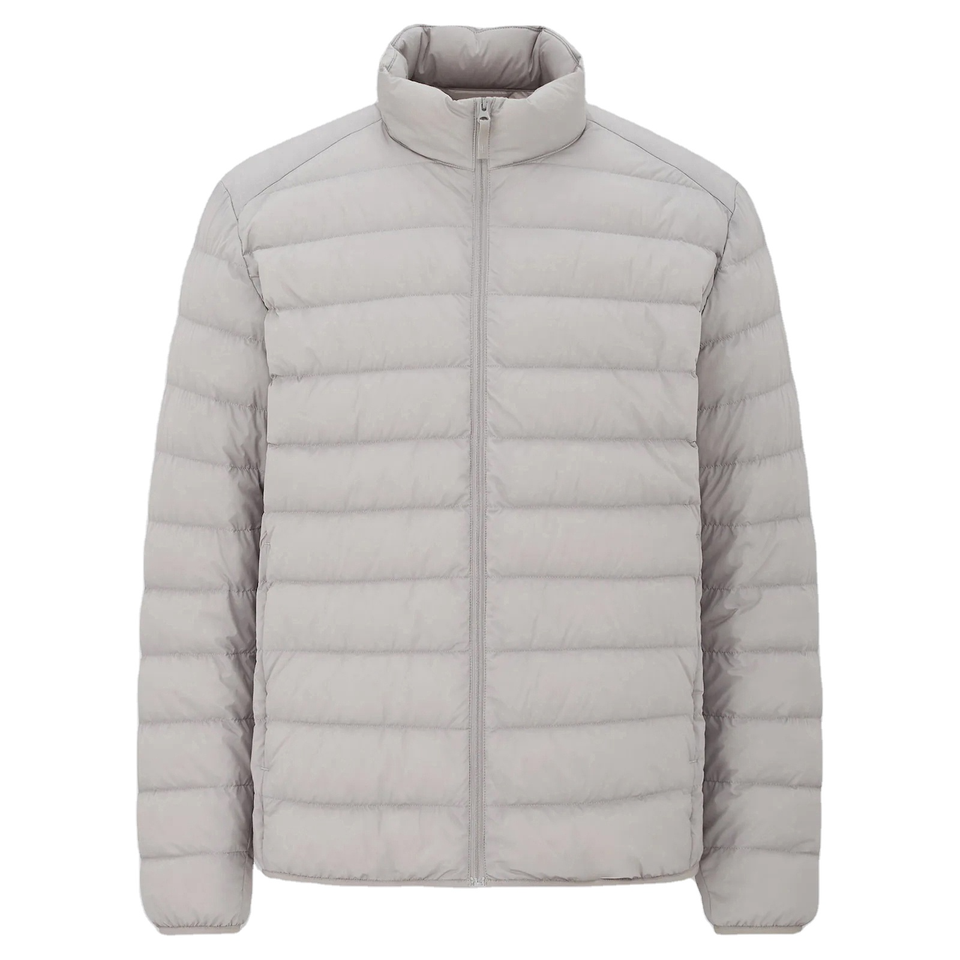 เสื้อแจ็คเก็ตพัฟเฟอร์ผู้ชาย ผ้าแคนวาส น้ำหนักเบา คุณภาพพรีเมียม วัสดุทนทาน มีฮู้ด ระบายอากาศได้ดี กันลม มีโลโก้ด้านหน้า แขนยาว