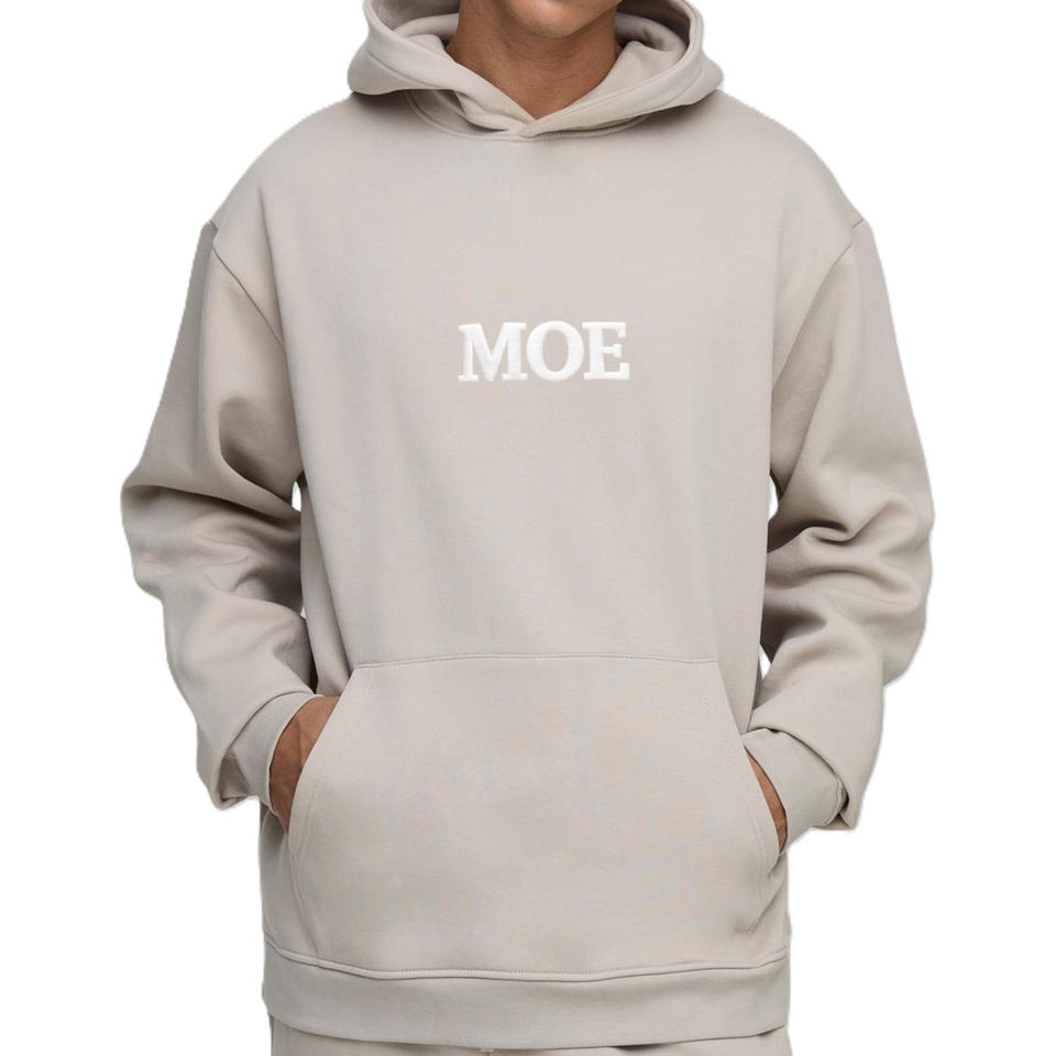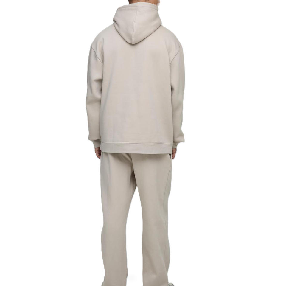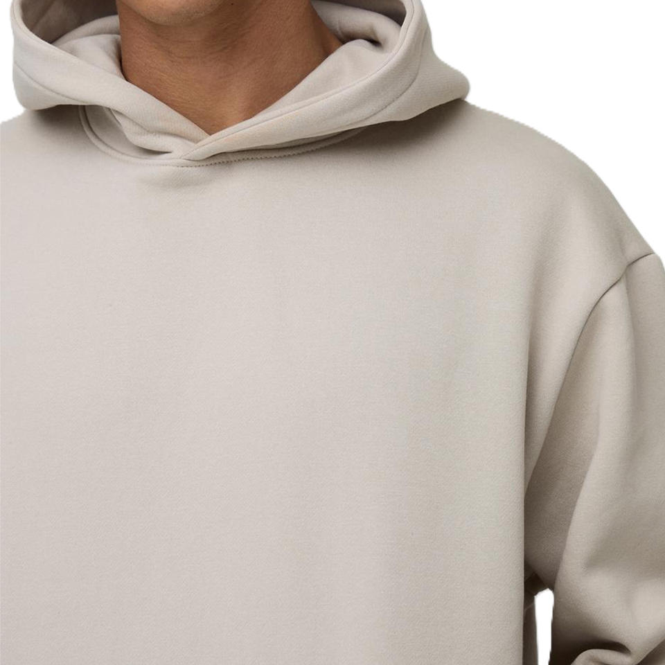 เสื้อฮู้ดดี้ผู้ชาย ผ้าฝ้ายฟลีซ 350 GSM ทรงโอเวอร์ไซส์ สไตล์สตรีทแวร์เรียบง่าย พร้อมปลายแขนริบบิ้น สำหรับแบรนด์ OEM รับผลิตตามแบบ