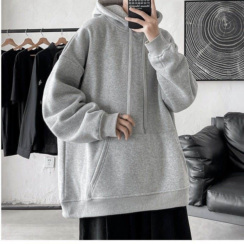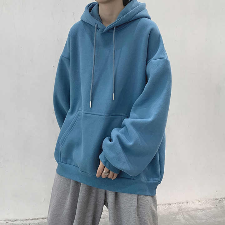 Men Pure Cotton Autumn Winter Base Layer Hoodie Fashionable Simple Long Sleeve Top with Solid Color Comfortable Sweatshirt