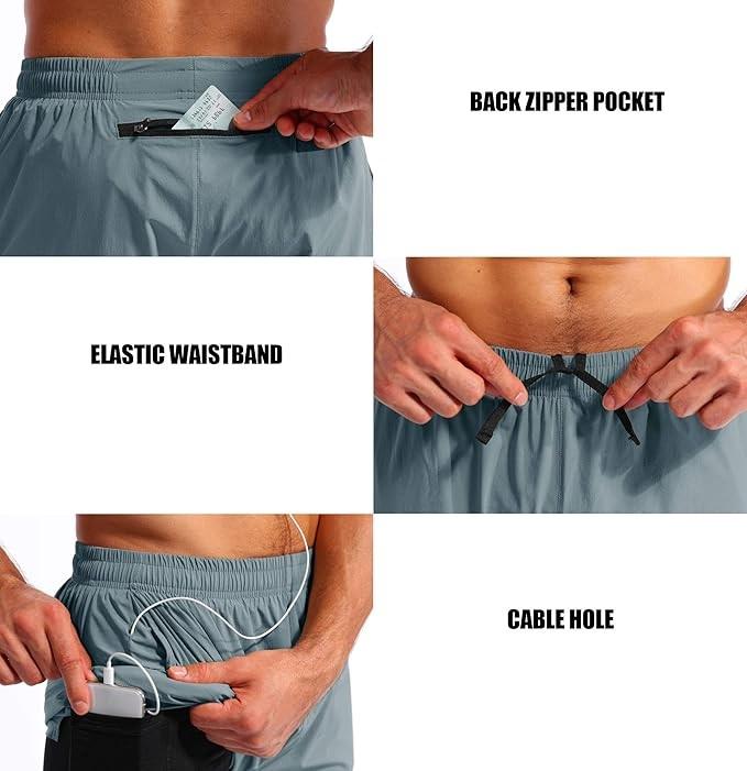 กางเกงขาสั้นออกกำลังกายผู้ชาย แห้งเร็ว กันน้ำ เอวยางยืด เหมาะสำหรับฟิตเนส วิ่ง ยิม ผลิตจากโพลีเอสเตอร์และผ้าฝ้าย