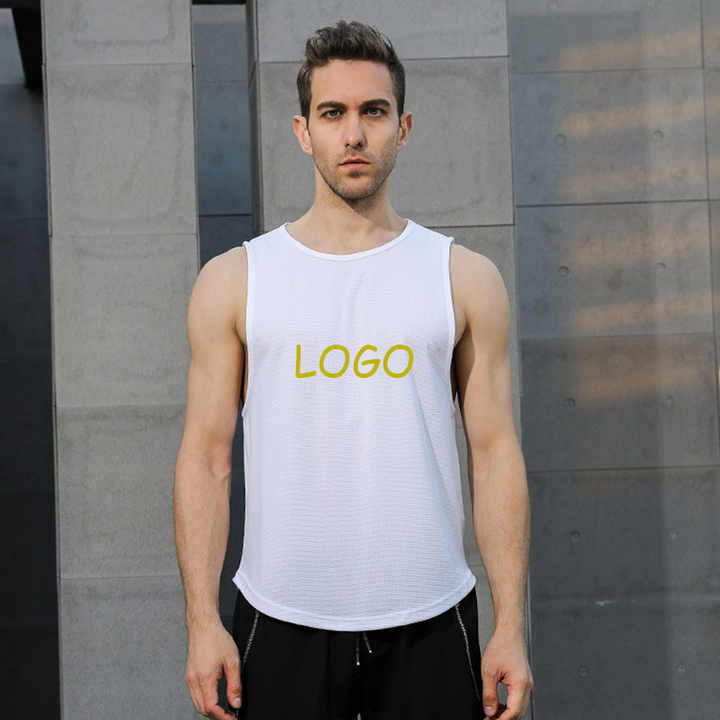 ผู้ชายแห้งเร็วตาข่ายเสื้อผ้าแขนกุดชุดชั้นในเสื้อยืดฟิตเนสผู้ชายแห้งเร็วกีฬาถัง