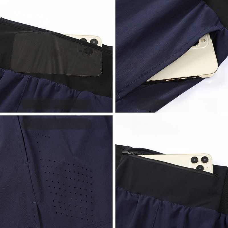 กางเกงขาสั้นรัดกล้ามเนื้อออกกำลังกายสำหรับผู้ชายแห้งเร็วกระเป๋าข้างเข้ารูปสำหรับใส่ปั่นจักรยานสีพื้นสำหรับฤดูร้อน
