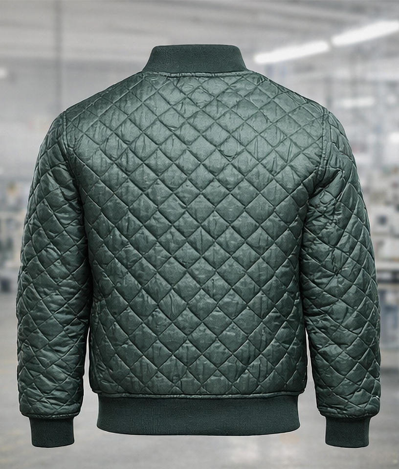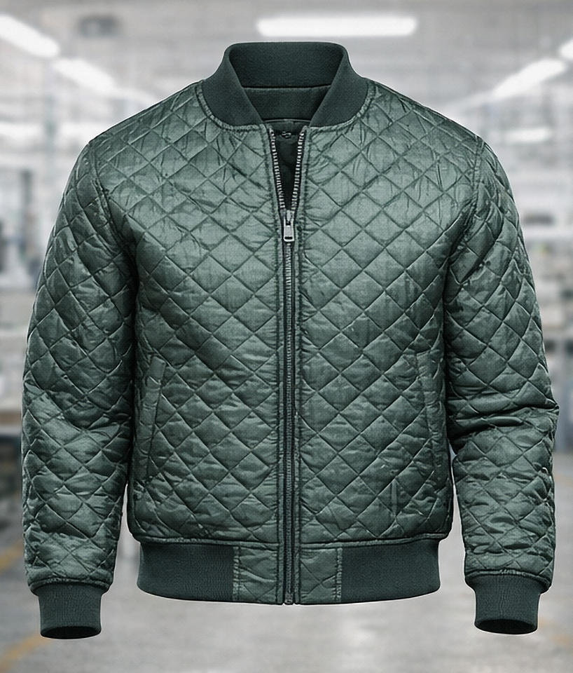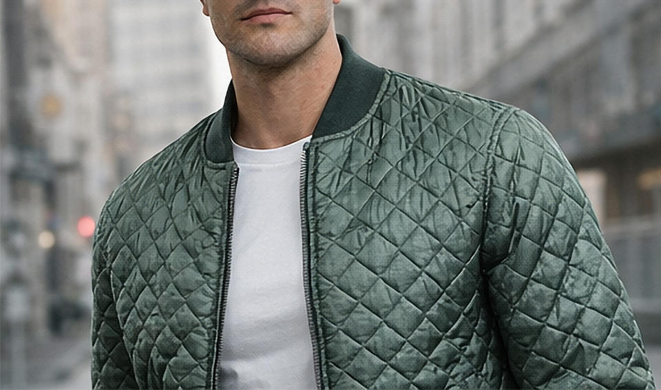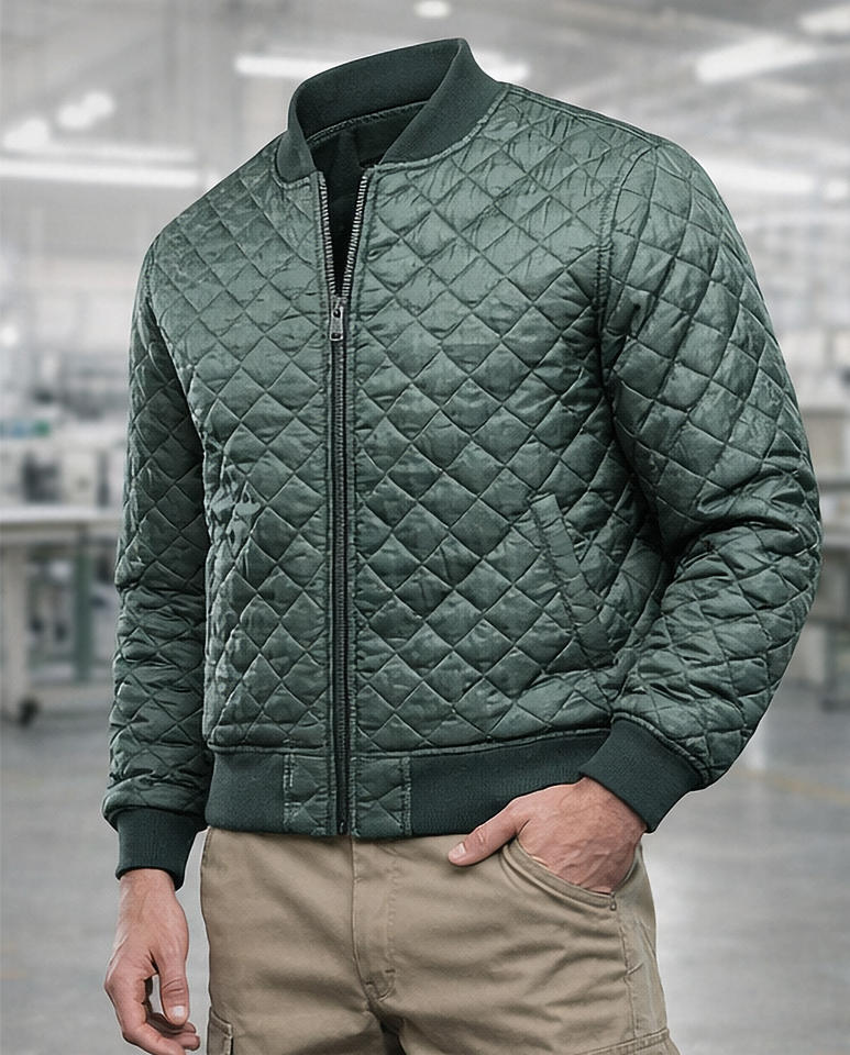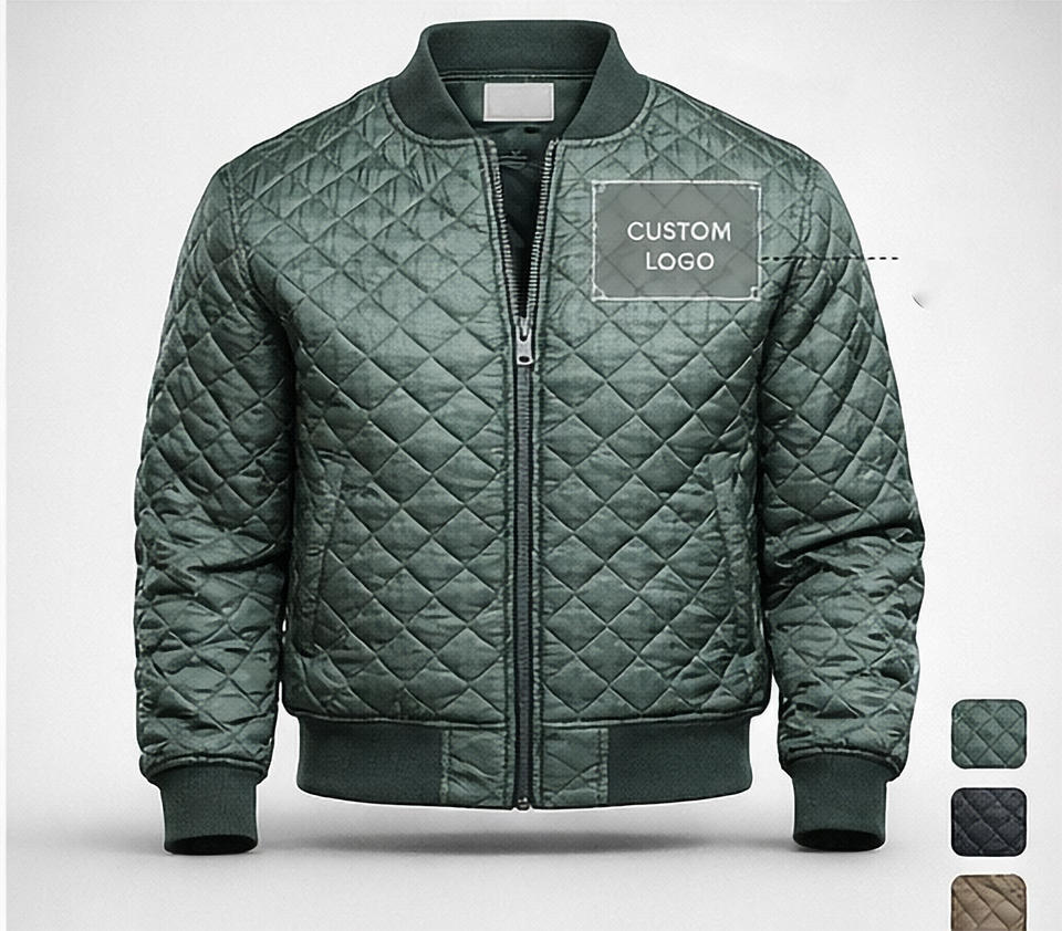 เสื้อแจ็คเก็ตบอมเบอร์ผู้ชายแบบควิลท์ แจ็คเก็ตวาร์ซิตี้บุนวมน้ำหนักเบา พร้อมปกแบบริบ ซิปปิด แจ็คเก็ตฤดูหนาวลำลอง