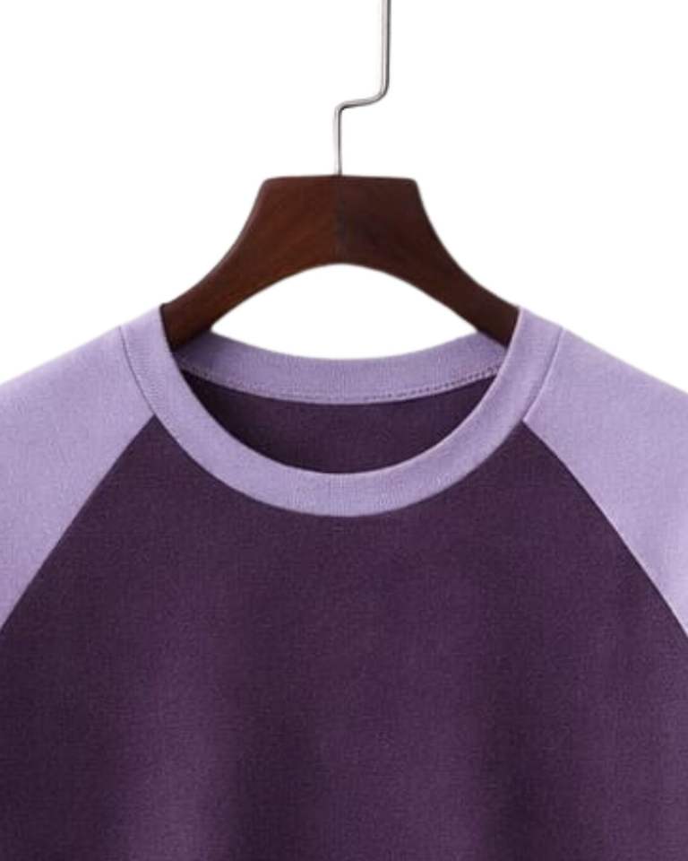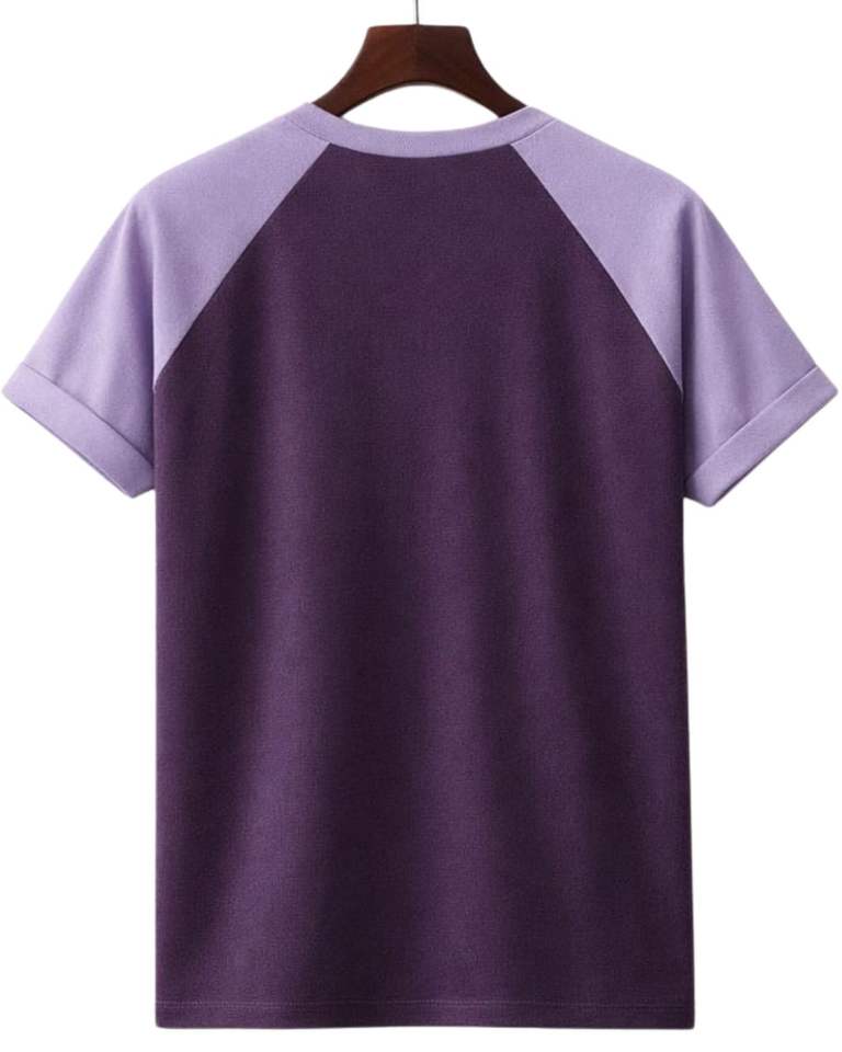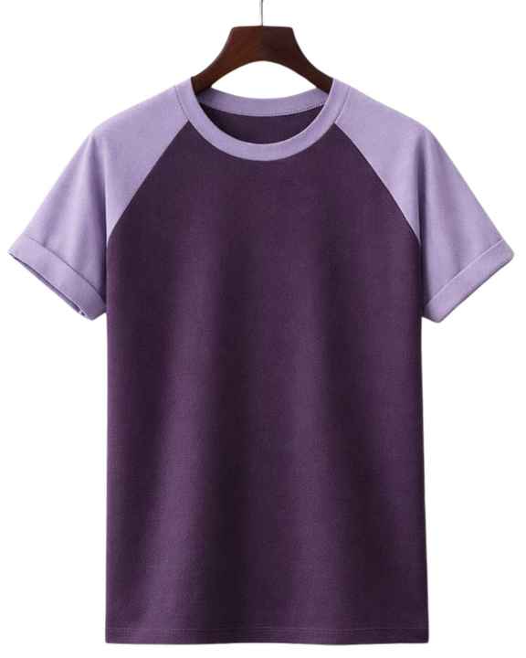 เสื้อยืดแขนสั้นคอกลมผ้าฝ้ายสีม่วงสองสีสไตล์ลำลองสำหรับฤดูร้อน แบบเรียบ ถักทอ รับสกรีนโลโก้