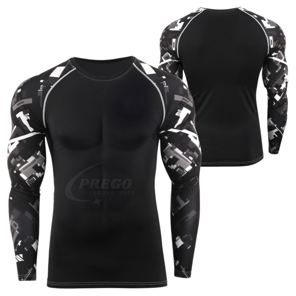 เสื้อรัดกล้ามเนื้อแขนยาวสำหรับผู้ชาย บริการ OEM ODM ทรงเข้ารูป ระบายอากาศได้ดี ผลิตจากผ้าสแปนเด็กซ์และโพลีเอสเตอร์ สำหรับผู้ใหญ่ ชุดกีฬา