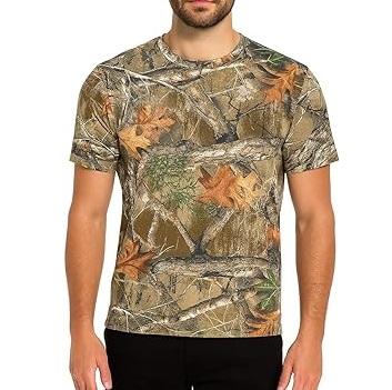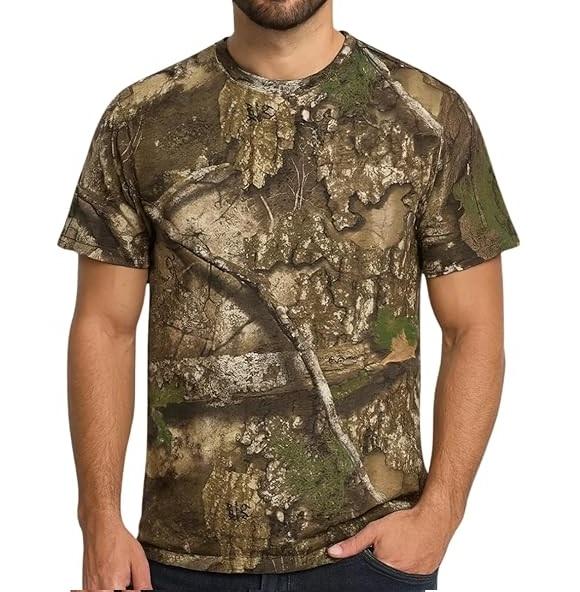 Realtree เสื้อยืดลายพรางสำหรับผู้ชาย, เสื้อยืด100% คอตตอนคอกลมแขนสั้นสำหรับล่าสัตว์กลางแจ้งระบายอากาศได้ดี