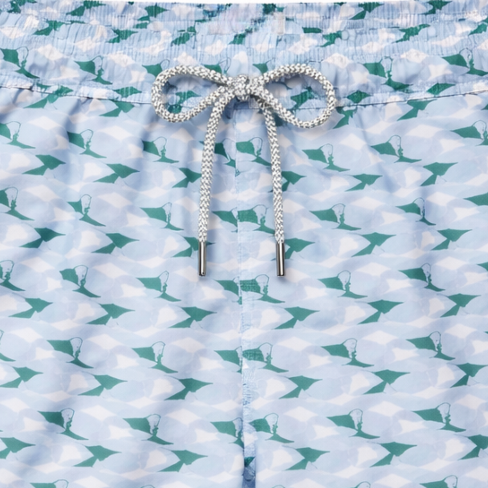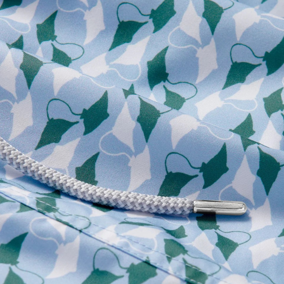 กางเกงว่ายน้ำชาย รีไซเคิล ลายกราฟฟิกเขตร้อน สีเขียว แห้งเร็ว มีเชือกผูกเอวแบบยางยืด