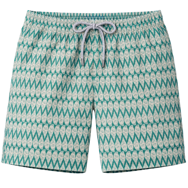กางเกงว่ายน้ำชาย รีไซเคิล ลายซิกแซกเขตร้อน สีเขียว แห้งเร็ว มีเชือกผูกเอวและกระเป๋า