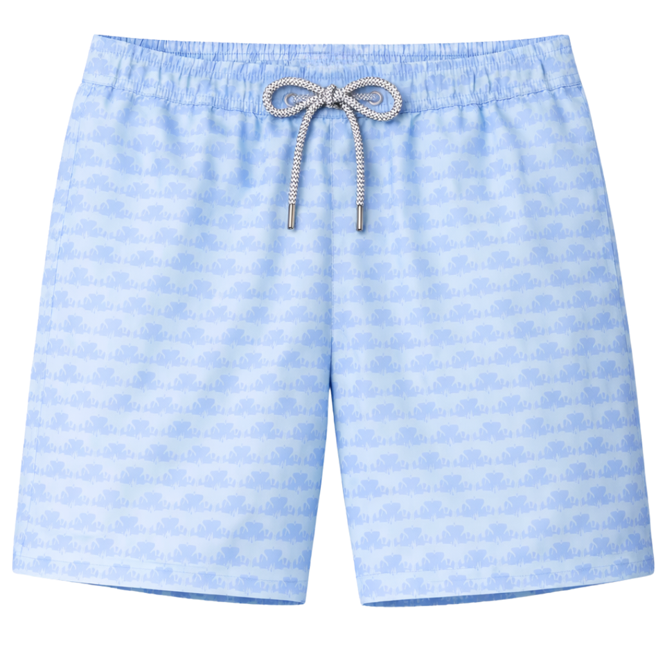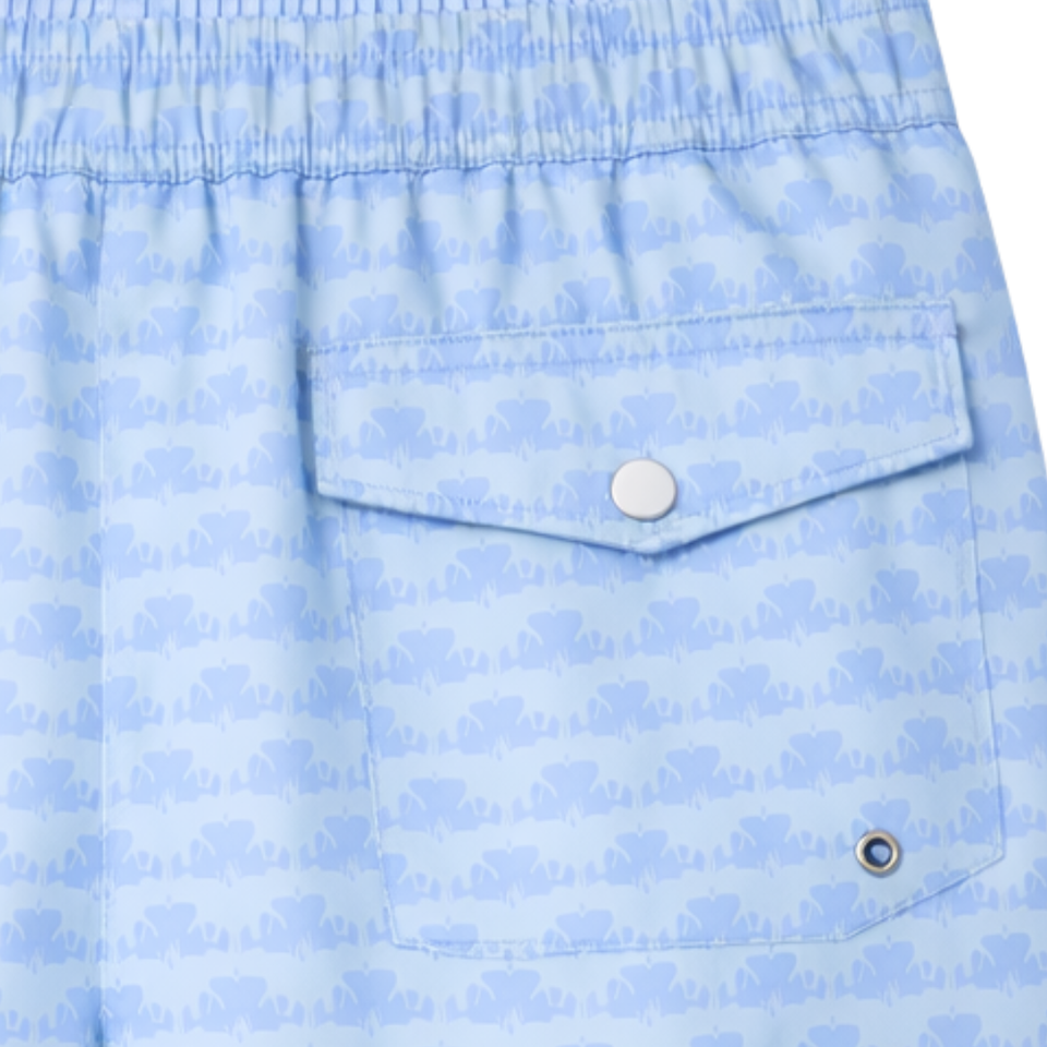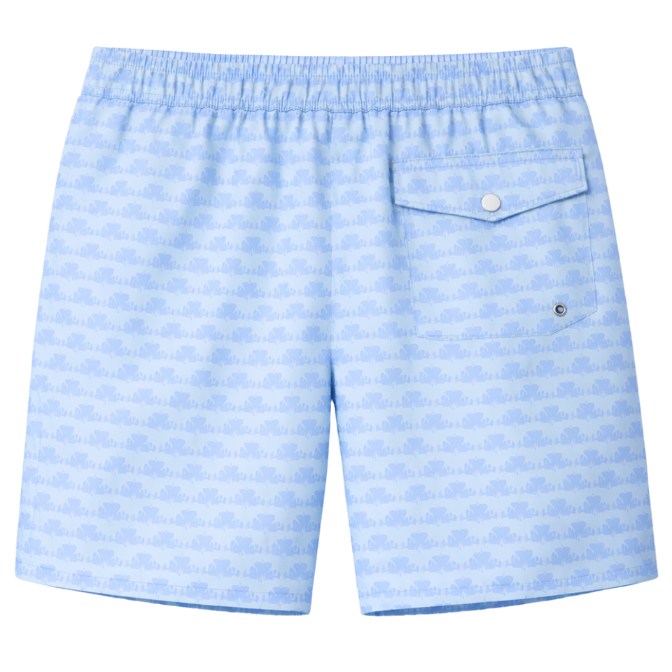 กางเกงว่ายน้ำชาย รีไซเคิล ลายช้าง สีฟ้าอ่อน แห้งเร็ว มีเชือกผูกเอวและกระเป๋า
