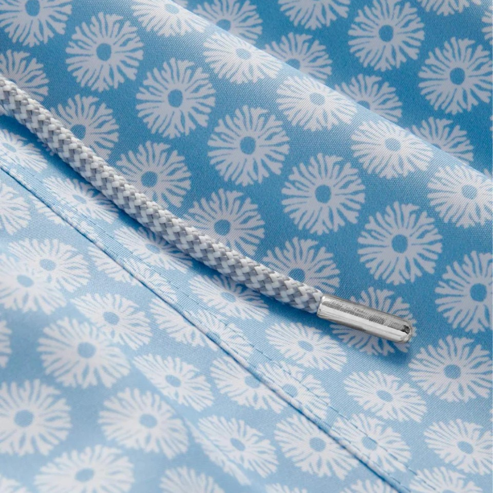 กางเกงว่ายน้ำชาย รีไซเคิล ลายปะการังสีฟ้าอ่อน แห้งเร็ว มีเชือกผูกเอวและกระเป๋า