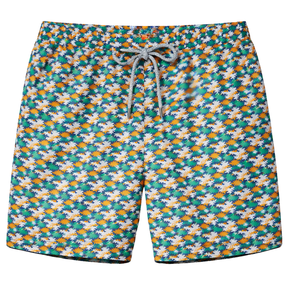 กางเกงว่ายน้ำชาย รีไซเคิล ลายดอกไม้ทะเลหลากสี แห้งเร็ว มีเชือกผูกเอวแบบยืดหยุ่น