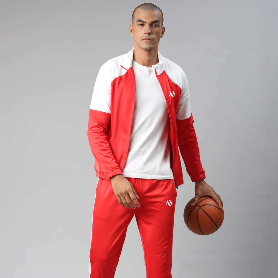 Men Red White Polyester Cotton Basketball Tracksuit Plus Size Mock Collar Sports Sweatsuit Training Autumn Huzaifa Products