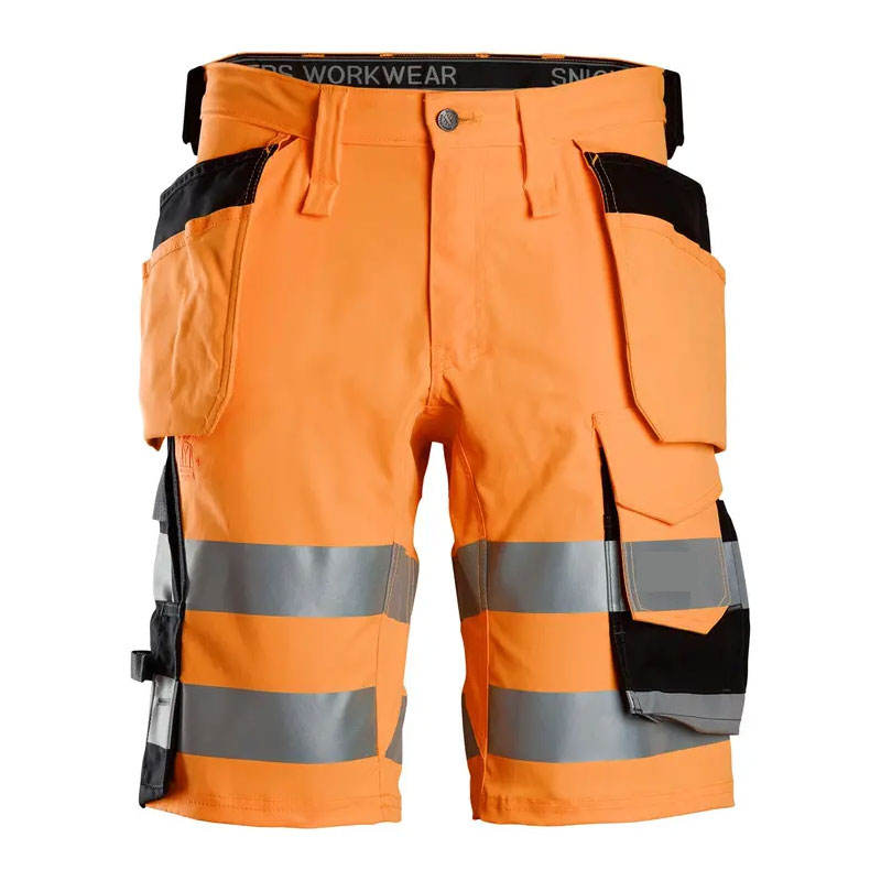 Men Reflective High Visibility Safety Work Cargo Shorts with Lace Canvas Fabric Multi-Pocket Design for Construction