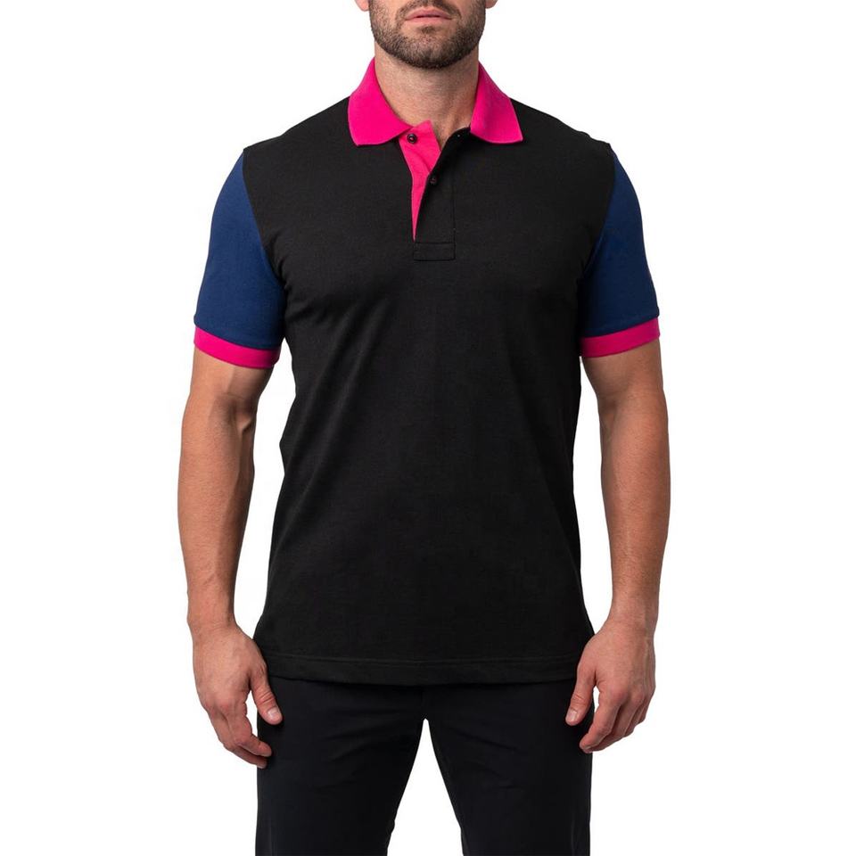เสื้อโปโลคอตตอนเนื้อนิ่มของผู้ชาย,เสื้อกีฬาทรงลำลองสีบล็อคแบบพอดีตัวสำหรับฤดูร้อน