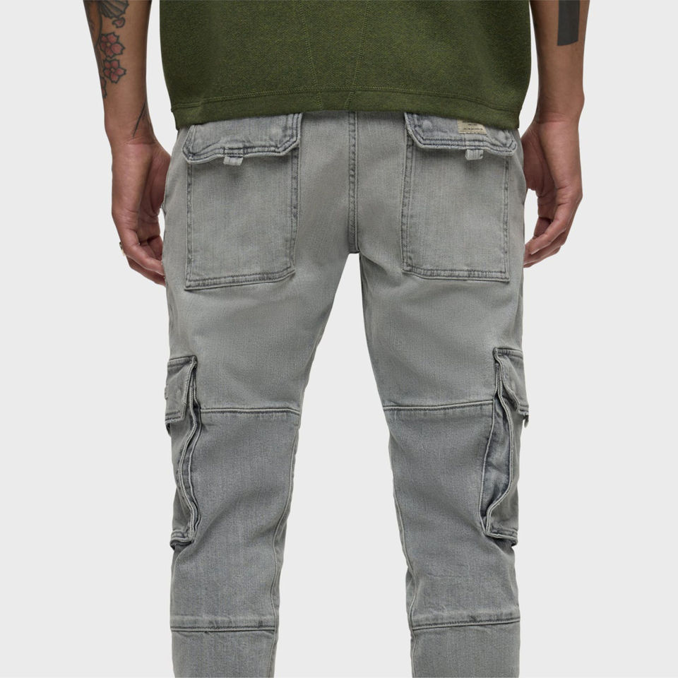 กางเกงยีนส์คาร์โก้ทรงหลวมสีเทาหินฟอกสไตล์วินเทจสำหรับผู้ชาย ใส่สบาย ทนทาน ผ้ายีนส์ยืดได้ มีกระเป๋าอเนกประสงค์ บริการ OEM