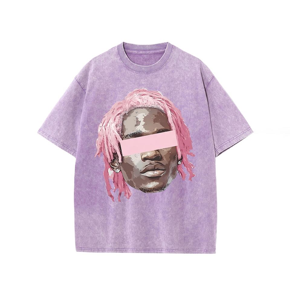 เสื้อยืดผ้าฝ้าย100% ซักลายสำหรับผู้ชายย้อนยุคเสื้อยืดทรงโอเวอร์ไซส์แขนสั้นสไตล์ฮิปฮอปแนวไฮสตรีทพิมพ์ลาย