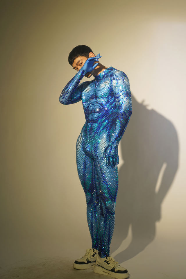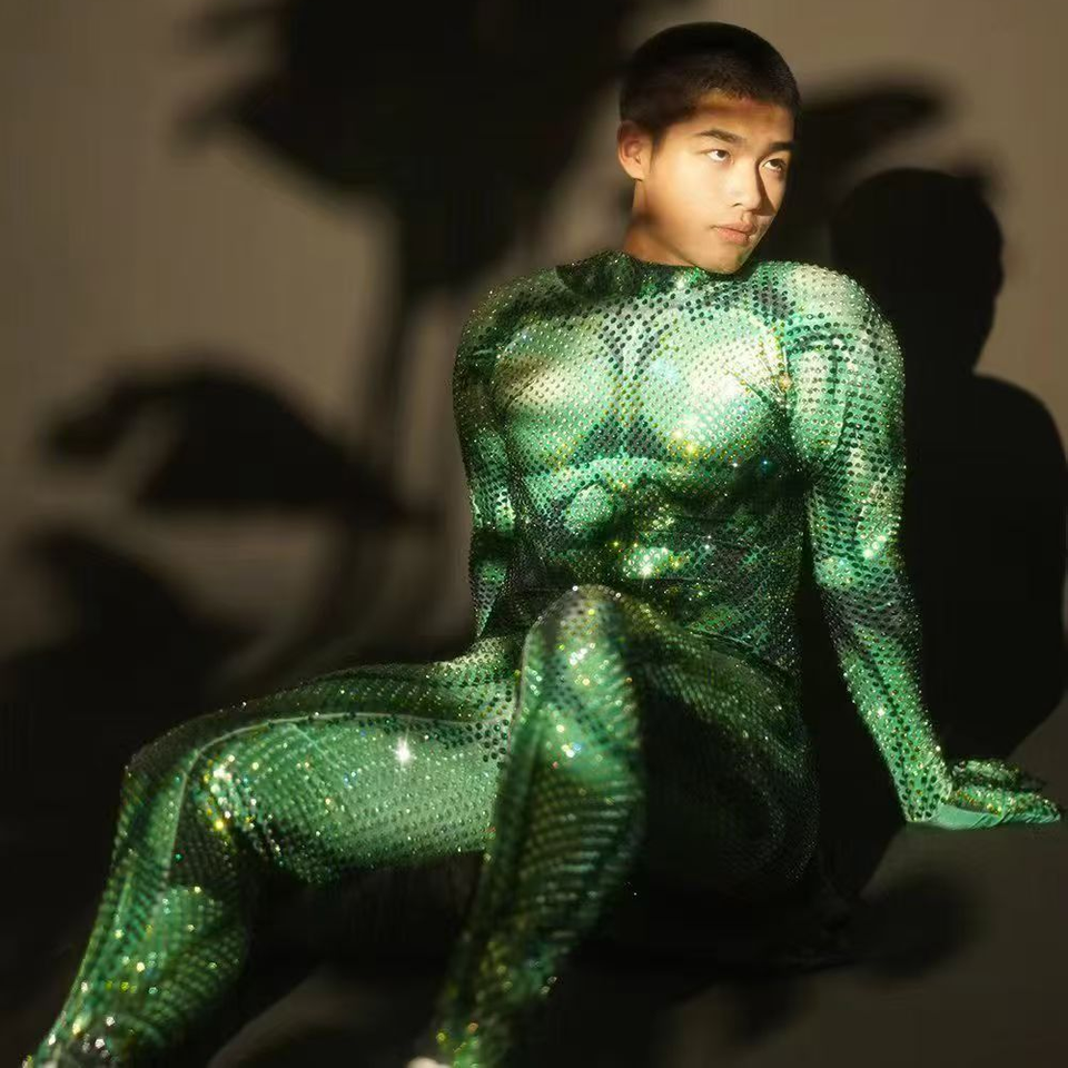 ชุดจั๊มสูทผู้ชายประดับเพชร ชุดเทศกาล ชุดฮาโลวีน ชุดแสดงกล้ามเนื้อ ชุดแสดงละคร ชุดรอมเปอร์ผู้ชาย ชุดบอดี้สูทผ้าสแปนเด็กซ์ ชุดเซ็กซี่สำหรับผู้ชายบนเวที