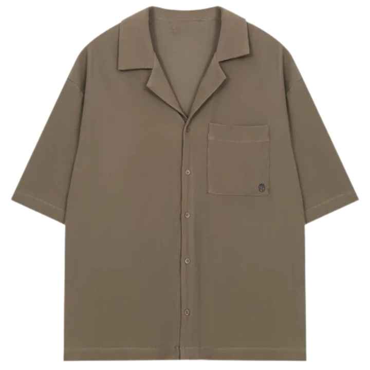 เสื้อเชิ้ตชายแขนสั้นทรงหลวมสบายๆ สีพื้น ติดกระดุม สำหรับฤดูร้อน รับผลิตตามแบบ (OEM) ขายส่ง