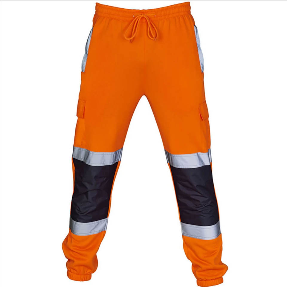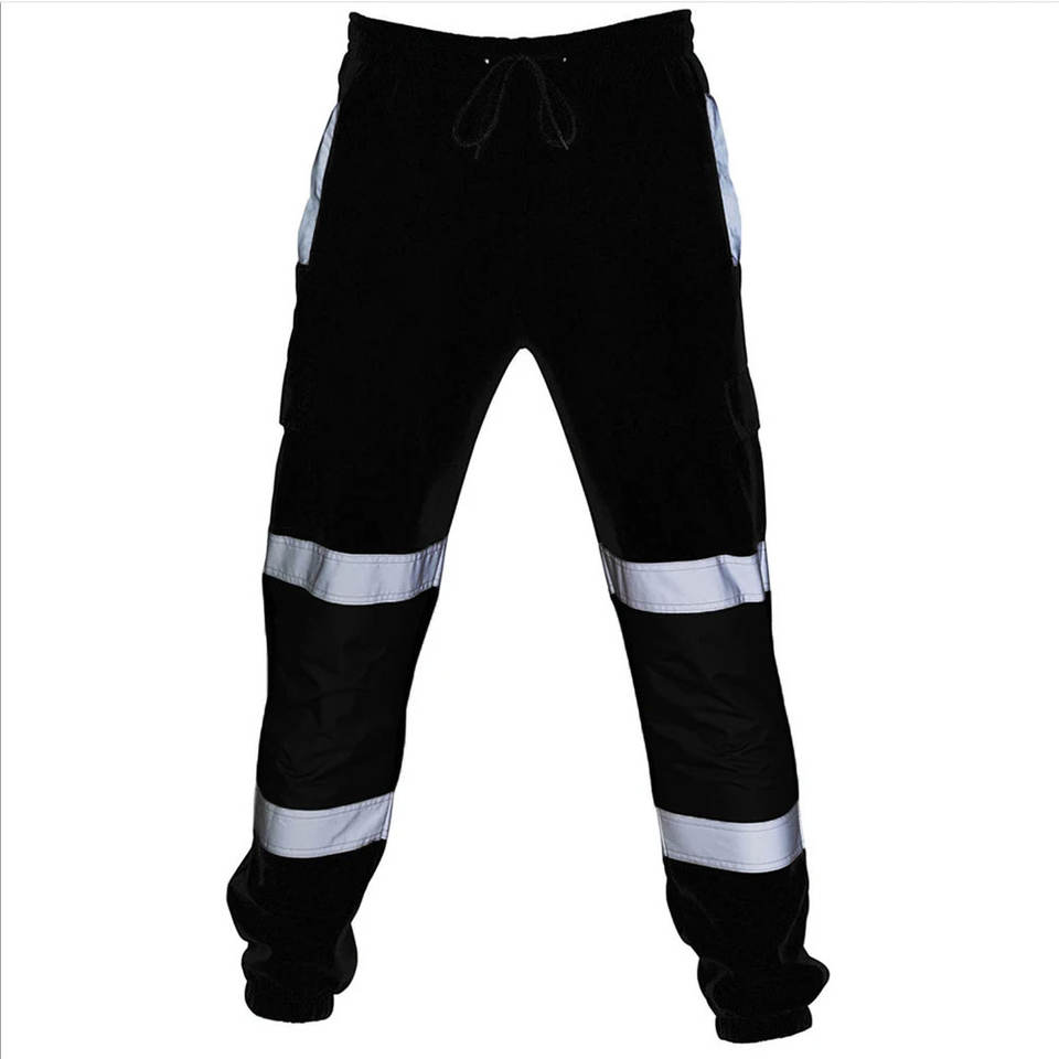 กางเกงทำงานกลางแจ้งสำหรับผู้ชาย สะท้อนแสง แถบสะท้อนแสง ทรงหลวม สไตล์จ็อกกิ้ง ตัดเย็บแบบแพทช์เวิร์ค