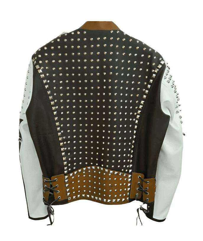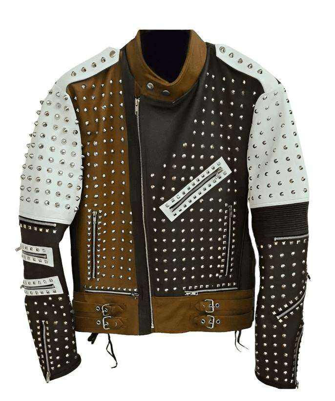 เสื้อแจ็คเก็ตหนังผ้าใบประดับหมุดสไตล์ร็อคพังก์สำหรับผู้ชาย ทรงเข้ารูป แฟชั่นทันสมัย ปิดด้วยซิป แขนยาว สไตล์เฮฟวีเมทัล
