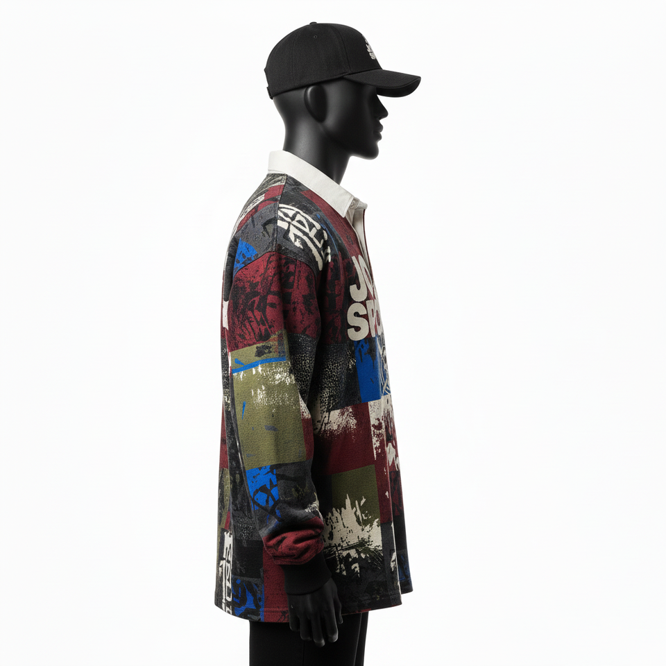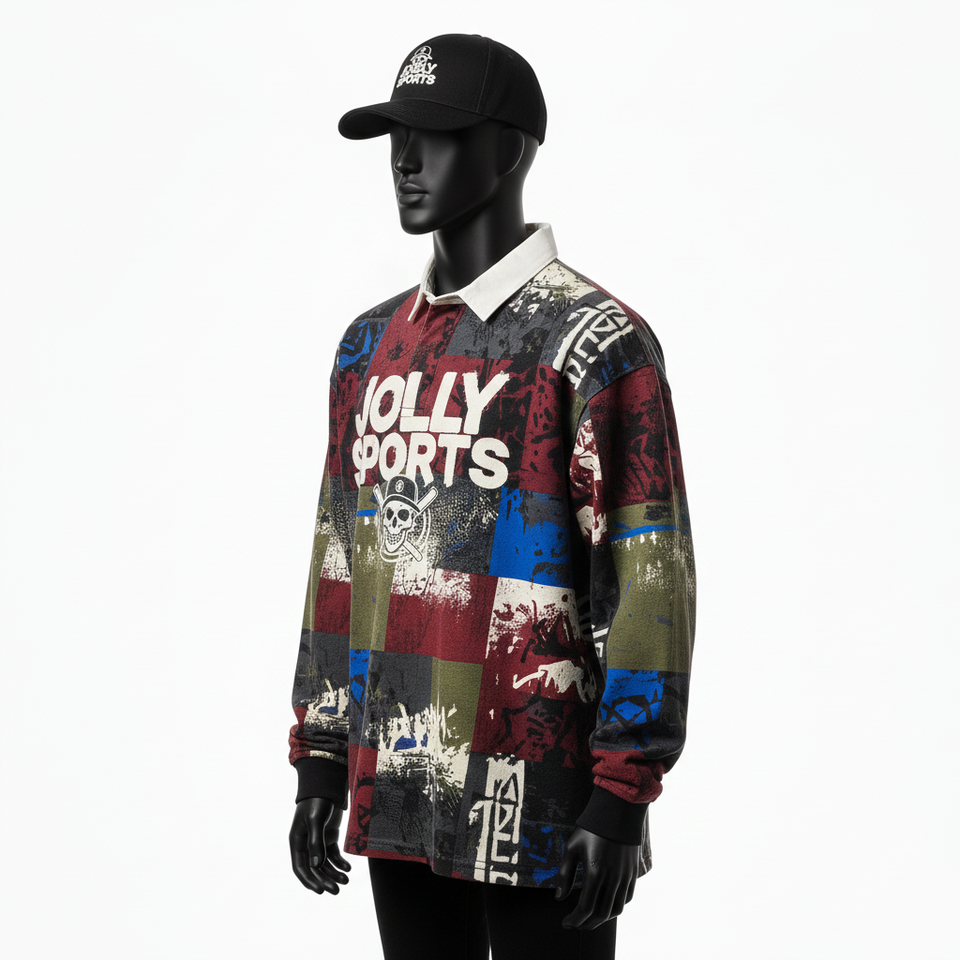 เสื้อรักบี้ผู้ชาย ผ้าคอตตอนผสมโพลีเอสเตอร์ พรีเมียม 260 GSM ตัดเย็บแบบแผง ลายพิมพ์แบบซับลิเมชั่น ปักโลโก้ตามสั่ง ชุดลำลอง