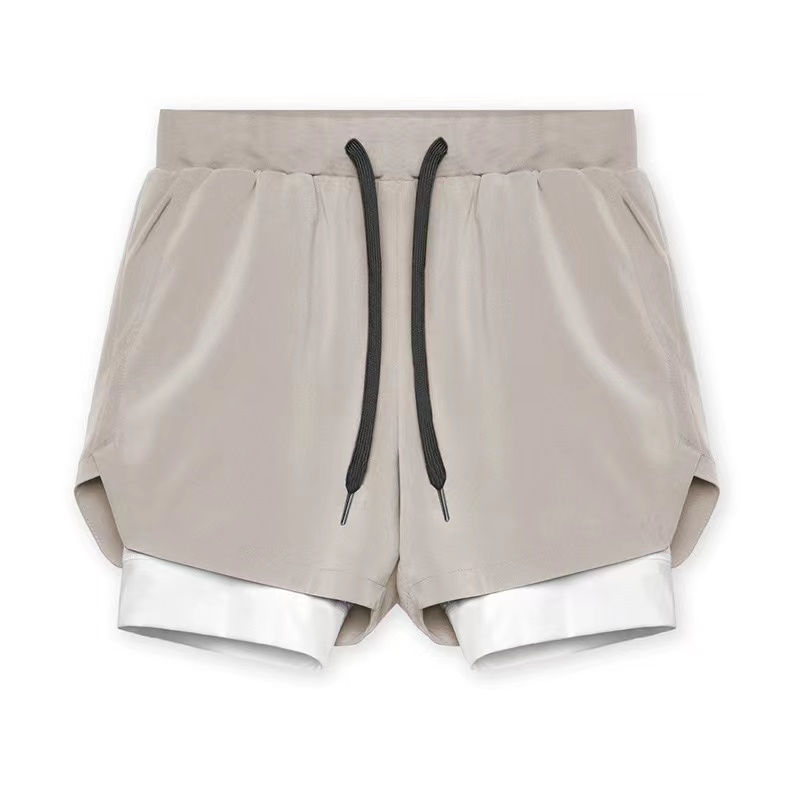 กางเกงขาสั้นผ้าฝ้ายโพลีเอสเตอร์สำหรับผู้ชายกางเกงขาสั้นสองชั้นระบายอากาศได้ดีแห้งเร็วสำหรับออกกำลังกายออกกำลังกายเพาะกาย