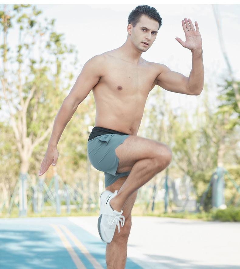 กางเกงขาสั้นวิ่งสำหรับผู้ชายกางเกงขาสั้นผ้าโพลีเอสเตอร์แห้งเร็วมีกระเป๋าตาข่ายน้ำหนักเบามีชุดชั้นในกางเกงขาสั้นเล่นกีฬาออกแบบโลโก้ได้ตามต้องการ