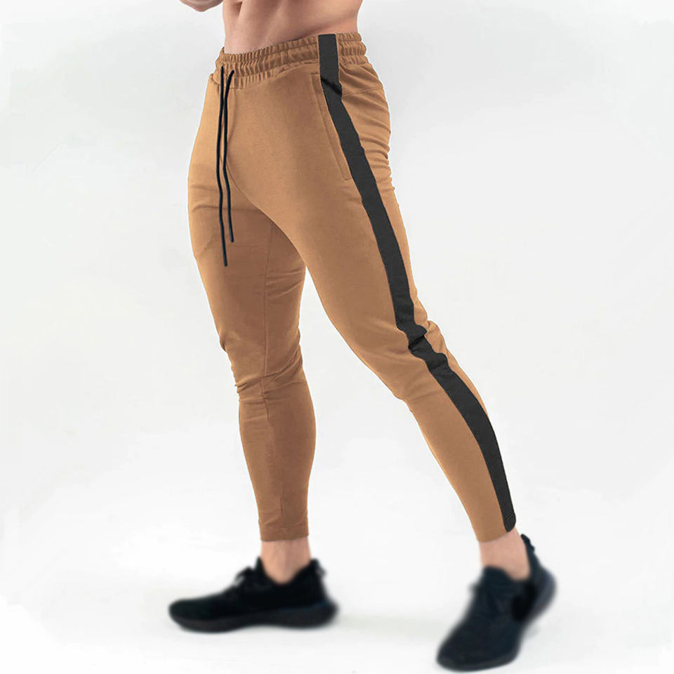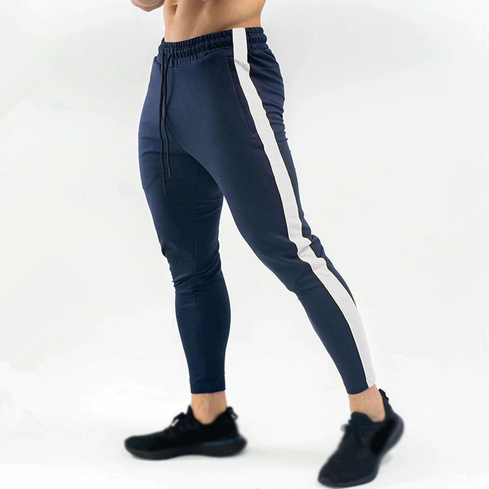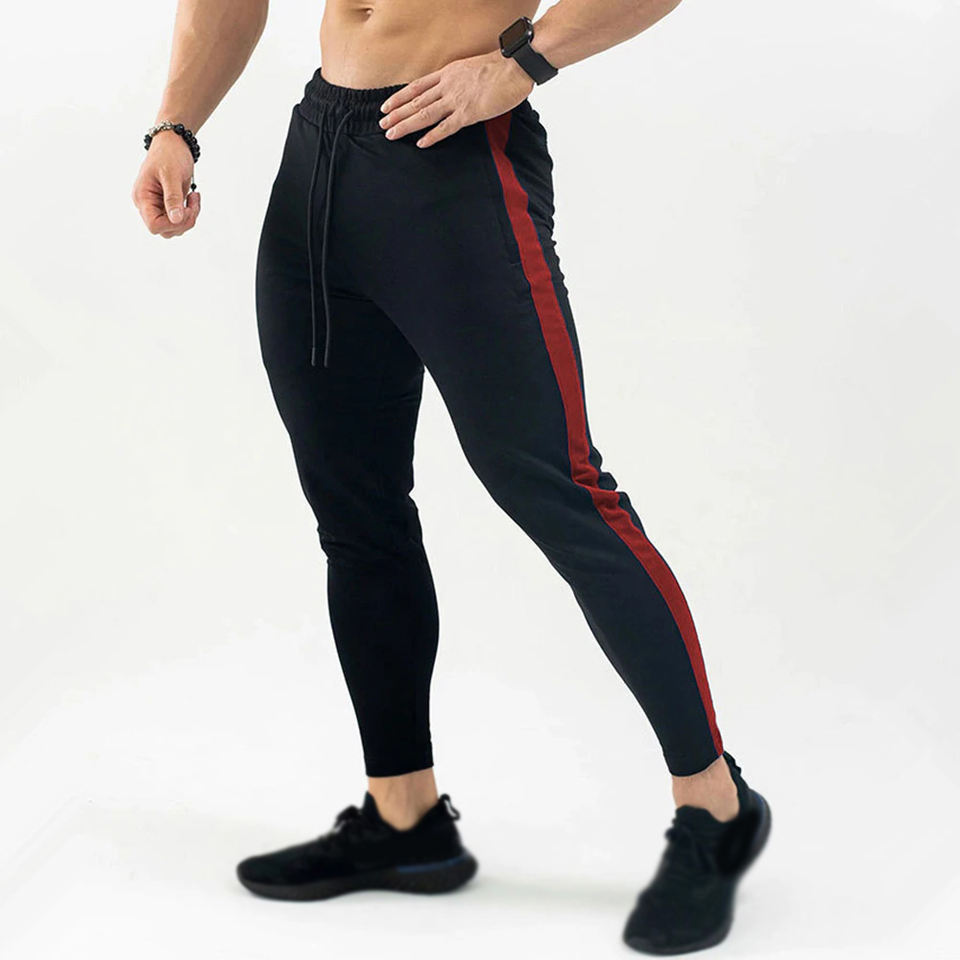 กางเกงวอร์มผู้ชาย กางเกงจ็อกเกอร์ผ้าฝ้าย กางเกงแทร็คแพนท์สำหรับฤดูใบไม้ผลิ กางเกงออกกำลังกายฟิตเนส กางเกงกีฬาฝึกซ้อม กางเกงลำลองทรงสกินนี่แบบต่อผ้า