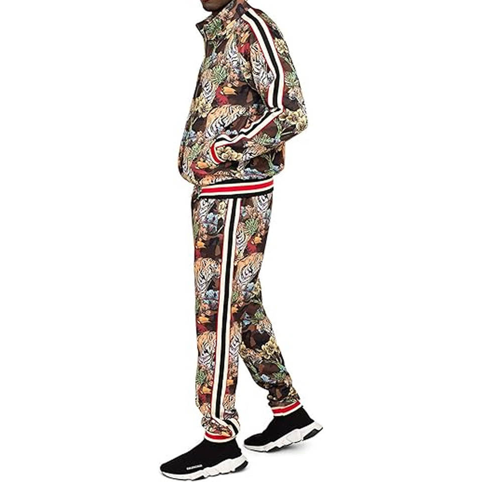 ชุดวอร์มวิ่งและออกกำลังกายสำหรับผู้ชายแจ็คเก็ตมีซิประบายอากาศได้ดีจับคู่กับกางเกงวิ่งปรับได้ลายเสือลายทาง g ลายพราง