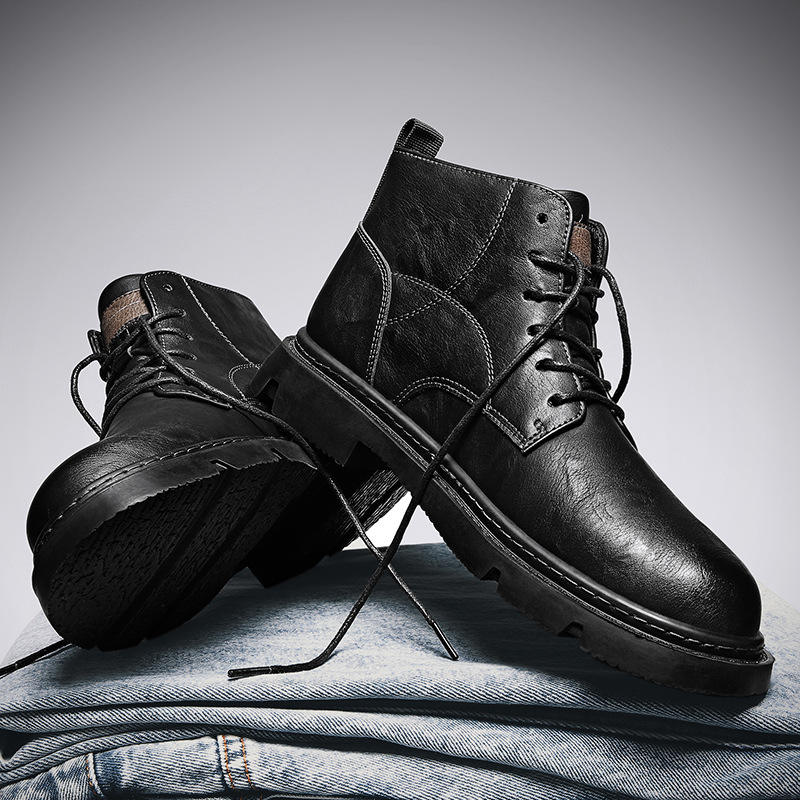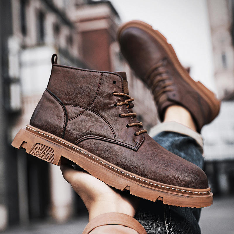 รองเท้าบูทผู้ชาย รองเท้าบูทหนังแท้สำหรับฤดูหนาว หุ้มข้อสูง บุขนสัตว์และผ้าฝ้ายกันหนาว รองเท้าบูทพื้นหนา หนังวัวชั้นบนสุด