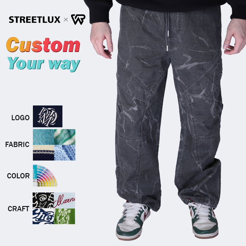 กางเกงเดนิมผ้าฝ้าย100% คุณภาพสูงสำหรับผู้ชายกางเกงทรงหลวมสไตล์ฮิปฮอปลำลองปักโลโก้ตกแต่งกระเป๋ากางเกงยีนส์ทรงแบ็กกี้