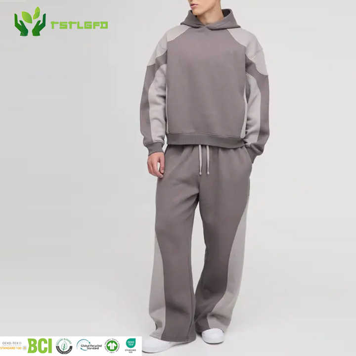 ชุดเซ็ตเทคแวร์มินิมอลลิสต์สำหรับผู้ชาย ลายพิมพ์แบบแอซิดวอช ปักลาย 3 มิติ ประดับคริสตัล เสื้อฮู้ดดี้ กางเกงลายทางข้าง ผลิตจากผ้าฝ้ายออร์แกนิค