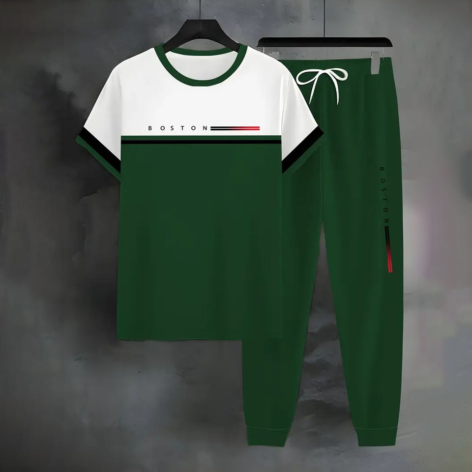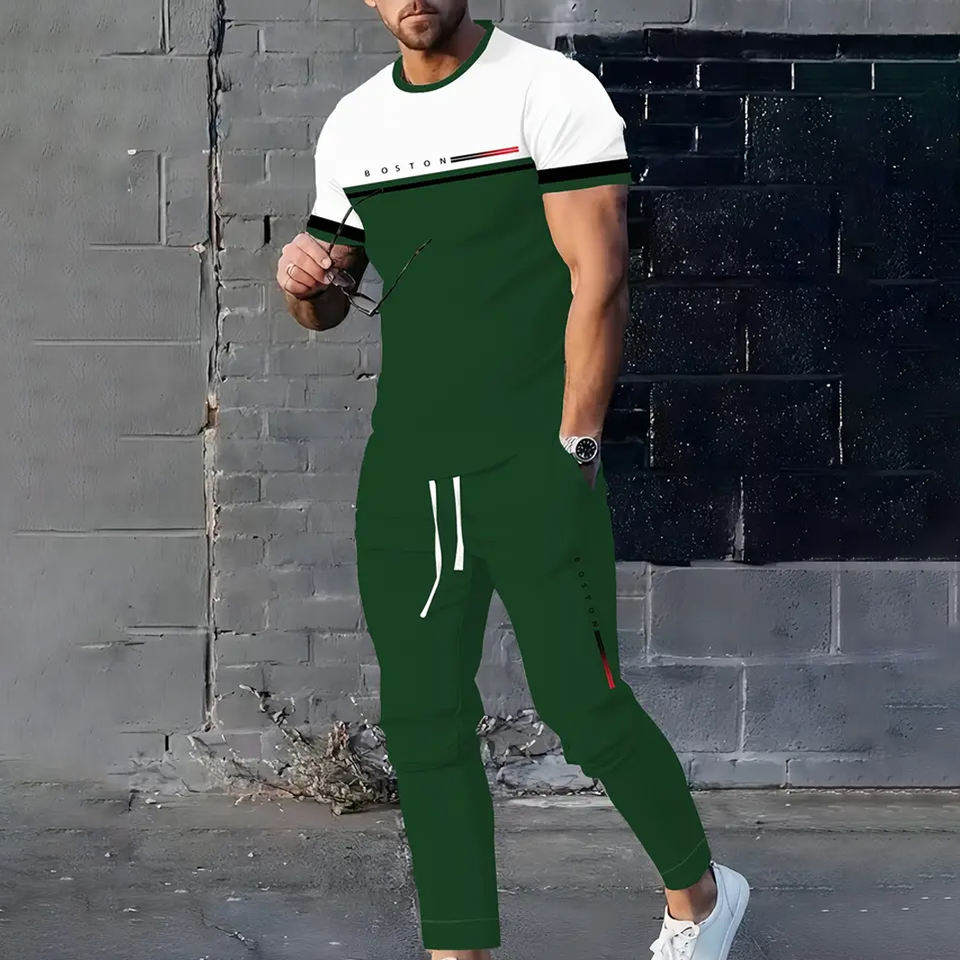 Men'S Polyester Sports Suit Elegant Casual Round Neck Slightly Elastic Knit with 3D Print Regular Fit Two-Piece Set