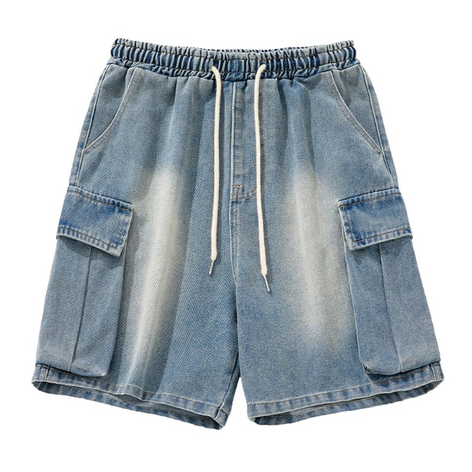 กางเกงขาสั้นเดนิมวินเทจสำหรับผู้ชาย ผ้าฝ้าย 100% ระบายอากาศ กันลม แห้งเร็ว สวมใส่สบาย เหมาะกับกิจกรรมกลางแจ้ง ไซส์ใหญ่