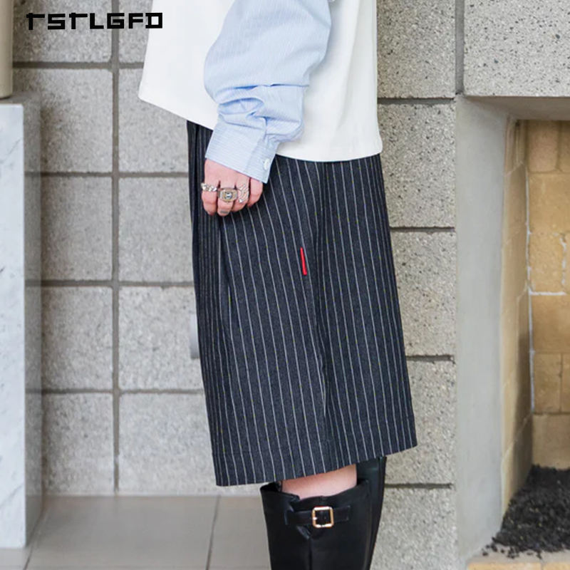 กางเกงขาสั้นทรงบอลลูนผู้ชาย สไตล์สตรีทแวร์ สีพื้น ผ้าทอโอโก้เท็กซ์ ทรงวินเทจ ขากว้าง ทรงหลวม ยืดหยุ่นสูง กันน้ำระดับเข่า