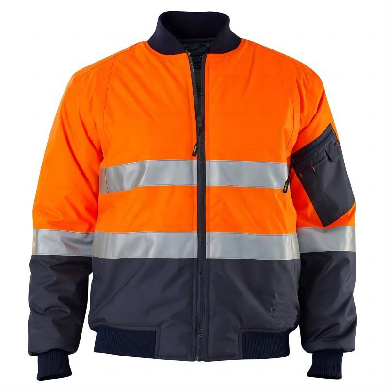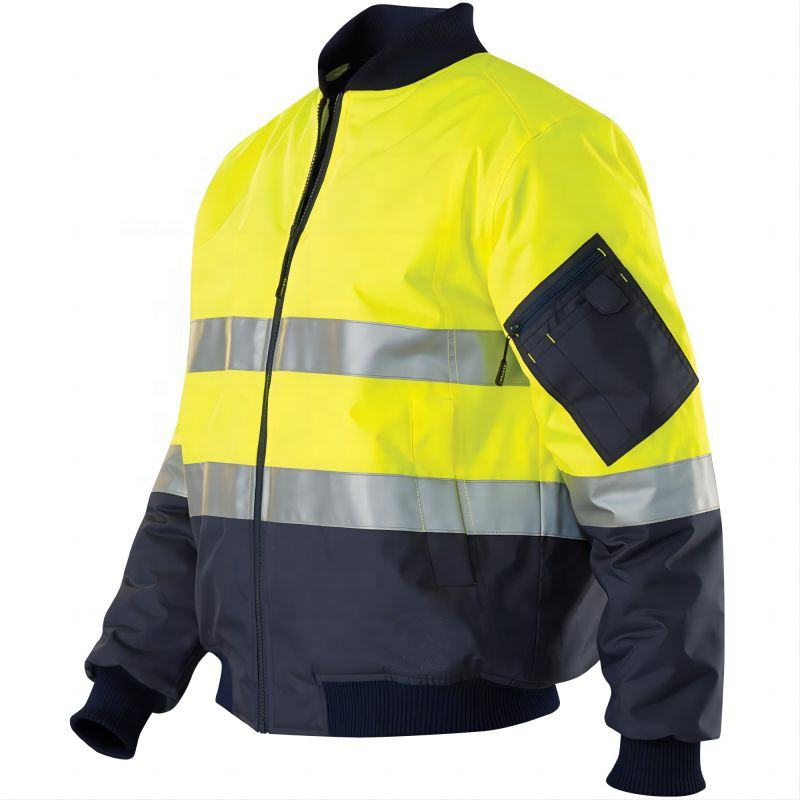 เสื้อแจ็คเก็ตนิรภัยกันน้ำสำหรับผู้ชาย ANSI Class 2 ไฟ LED กระพริบ มองเห็นได้ชัดเจน เสื้อแจ็คเก็ตบอมเบอร์โพลีเอสเตอร์สำหรับฤดูหนาว