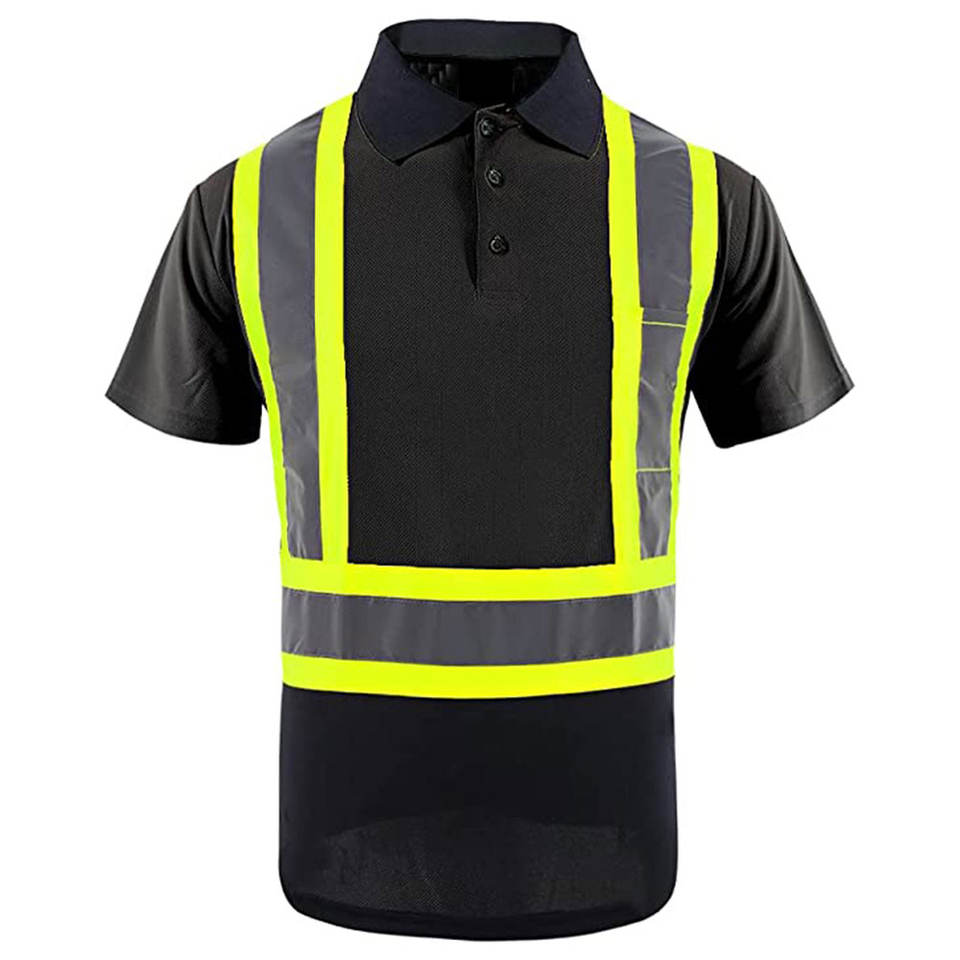 เสื้อโปโลนิรภัยสำหรับผู้ชาย - เสื้อทำงานแบบสะท้อนแสง Hi-Viz พร้อมแถบสะท้อนแสง เสื้อยืดนิรภัย เสื้อโปโลนิรภัย