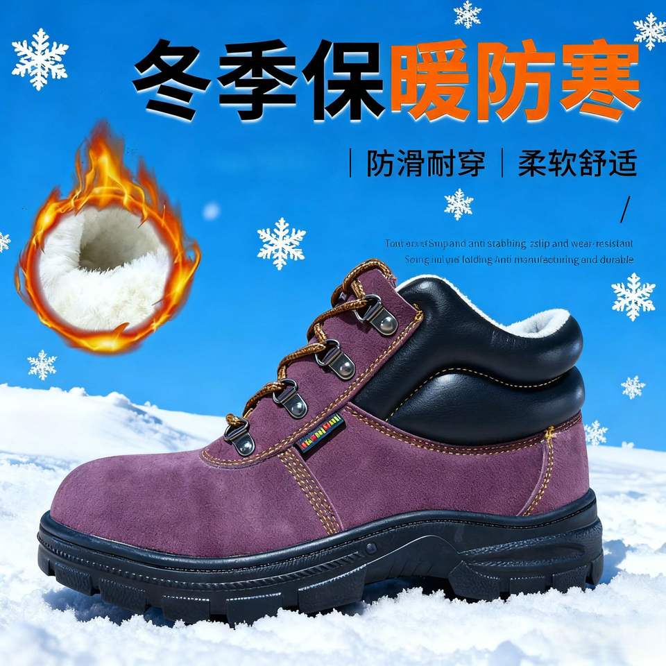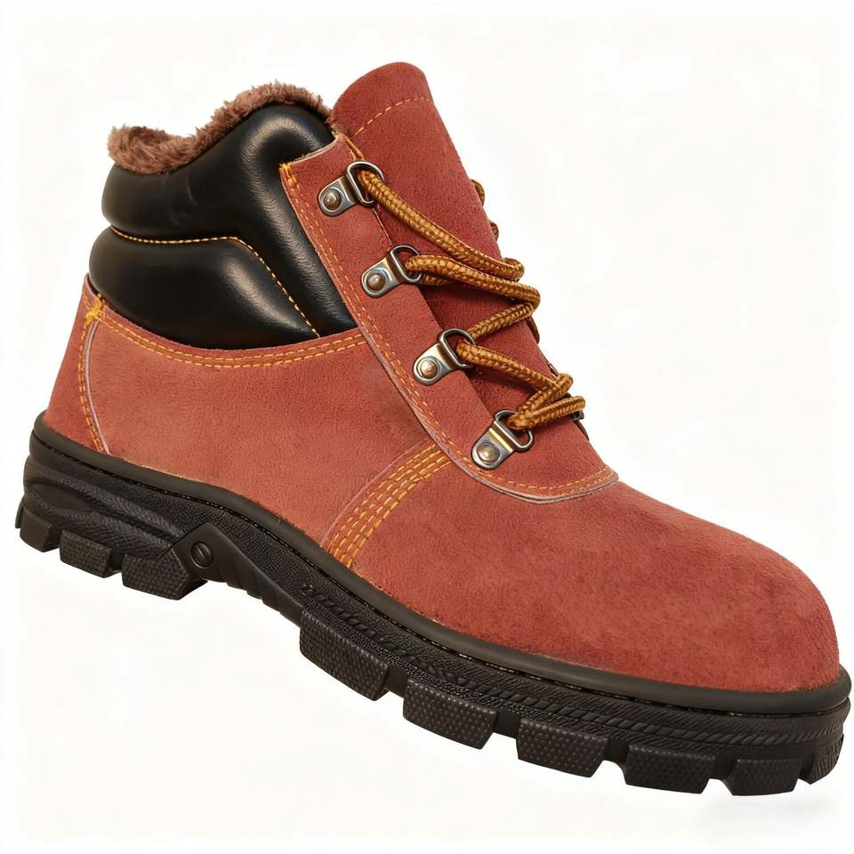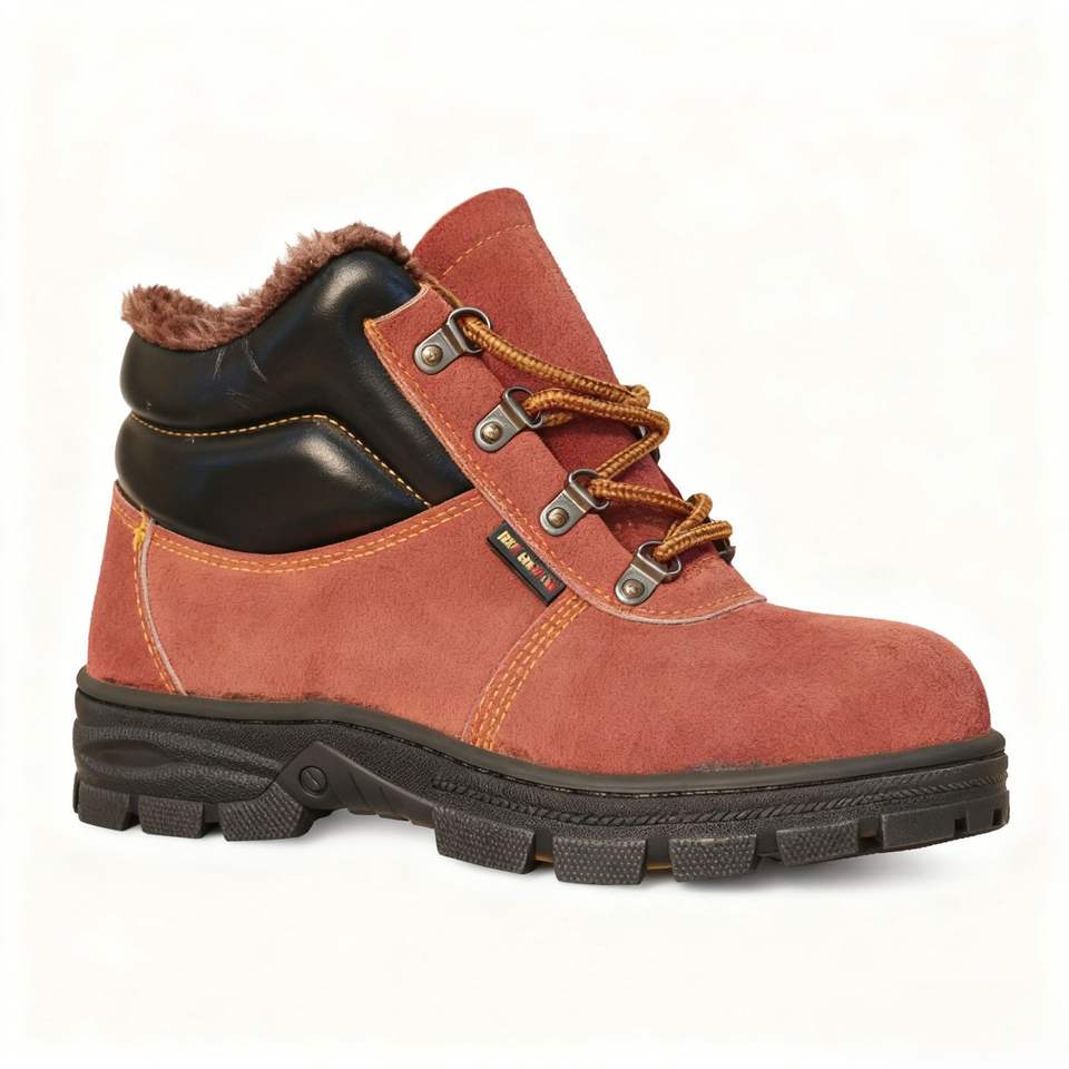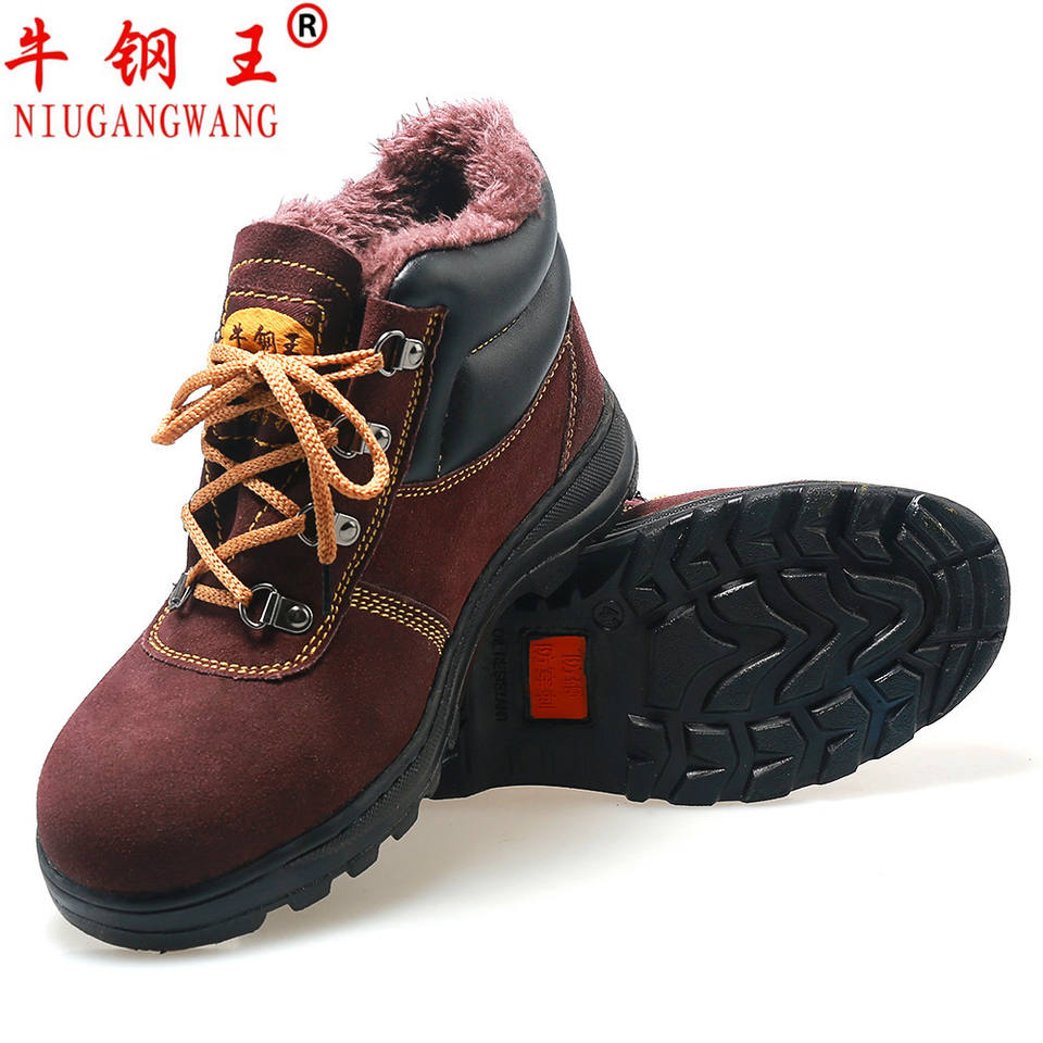 รองเท้าเซฟตี้บุรุษ หัวเหล็ก ป้องกันการกระแทก ป้องกันการเจาะทะลุ บุผ้าฝ้ายสีน้ำตาล แบบหุ้มข้อสูง