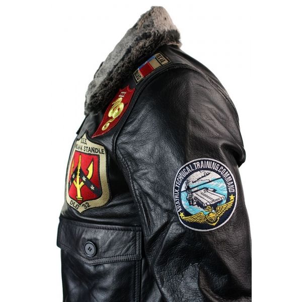 บอมเบอร์แจ็คเก็ตปกขนแกะสำหรับผู้ชาย,แจ็คเก็ตหนังแท้คอปกถอดได้สำหรับนักบิน