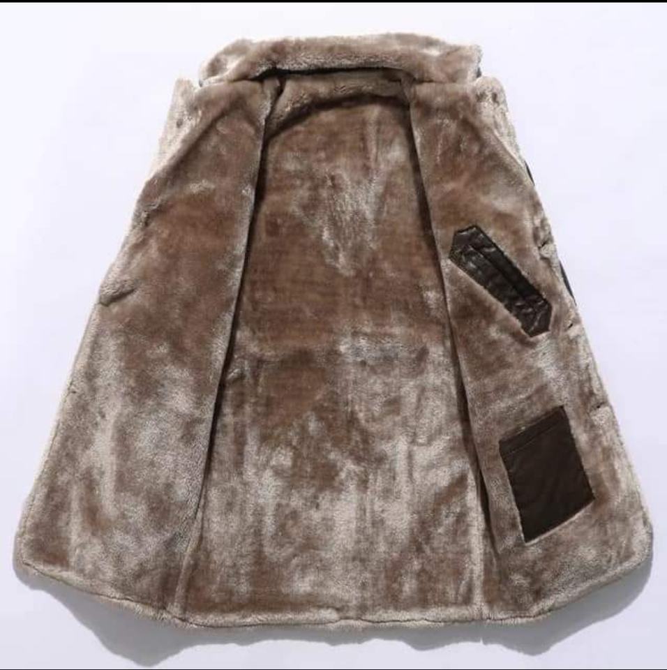 เสื้อโค้ทขนสัตว์หนังแกะสีน้ำตาลสำหรับผู้ชาย,แจ็คเก็ตขนเฟอร์ขนแกะแฟชั่นขนเชอร์ปาแท้สำหรับฤดูหนาวเสื้อแจ็คเก็ตขนสัตว์ให้ความอบอุ่นในวันคริสต์มาสสำหรับเด็กผู้ชาย
