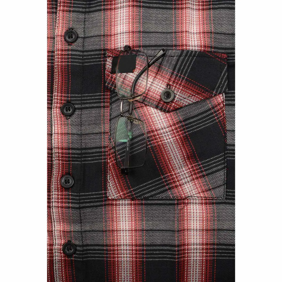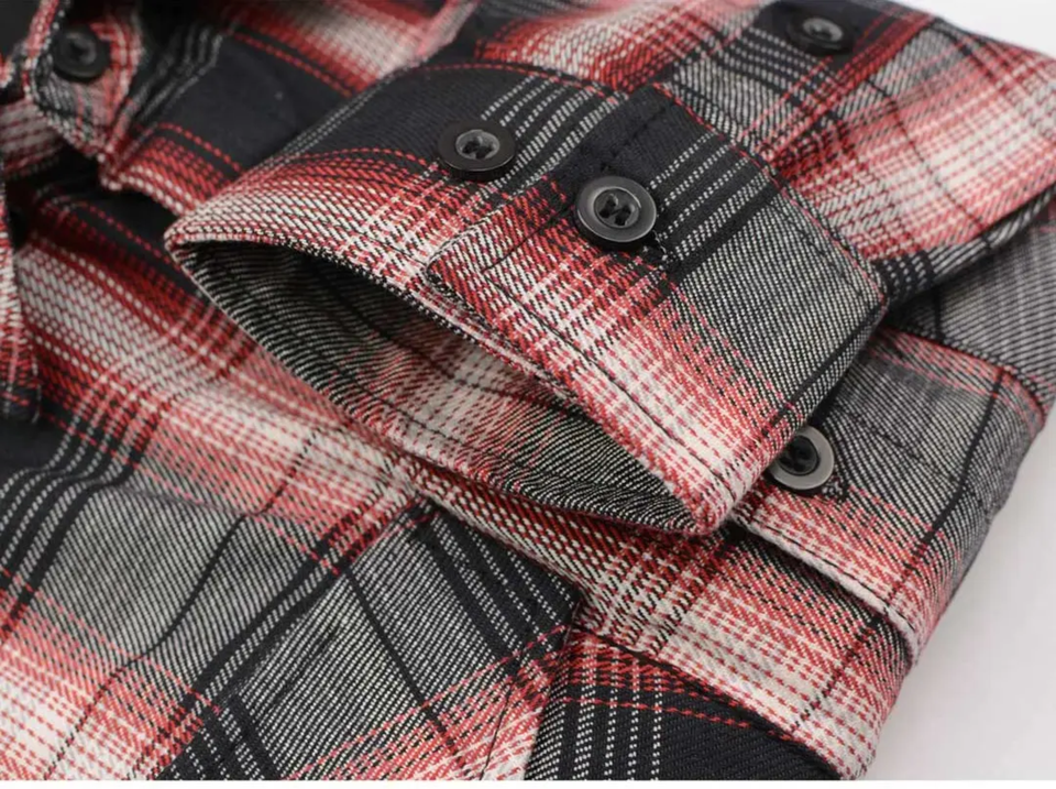 เสื้อผู้ชายผ้าฝ้ายลำลองลายตารางแขนยาวมีกระดุมทรงสตรีทแวร์ดีไซน์โลโก้ออกแบบได้ตามต้องการ