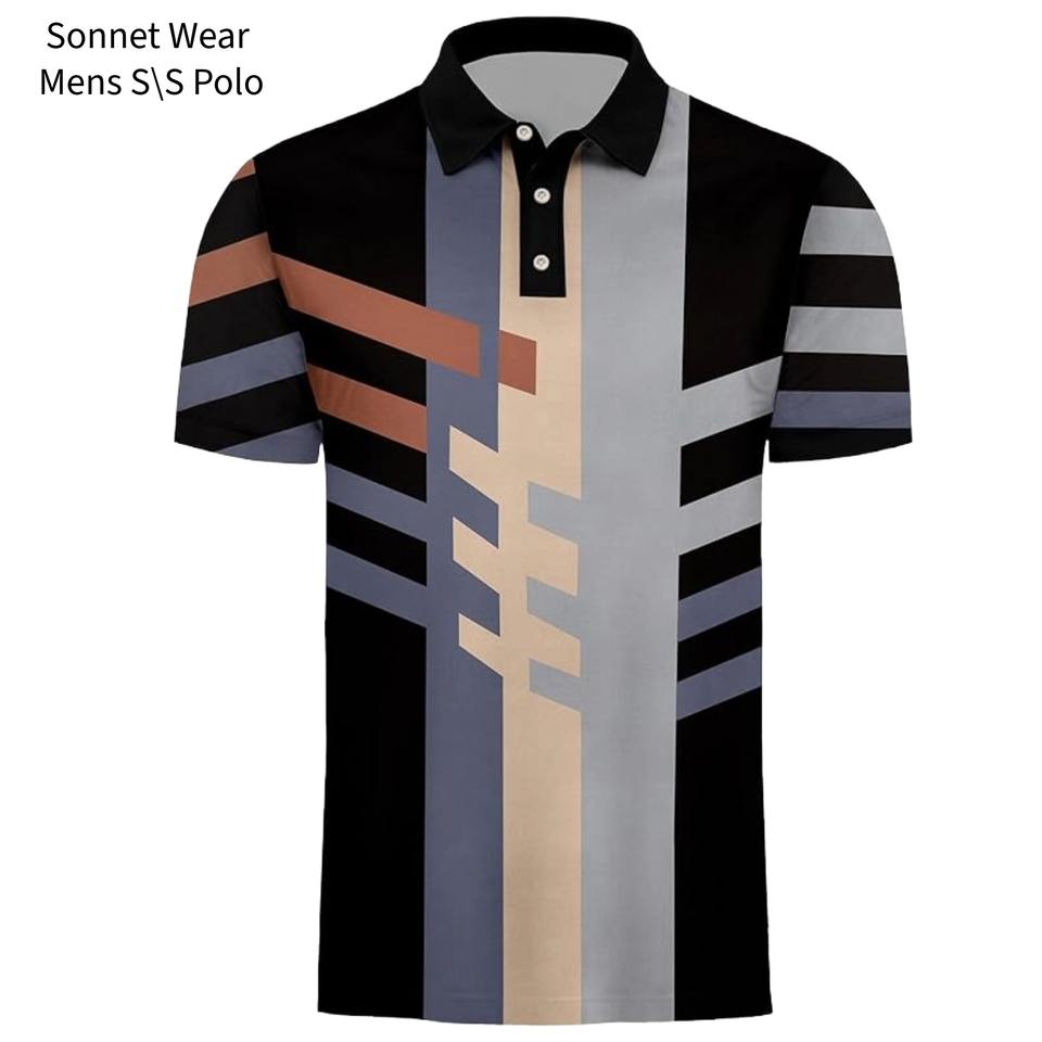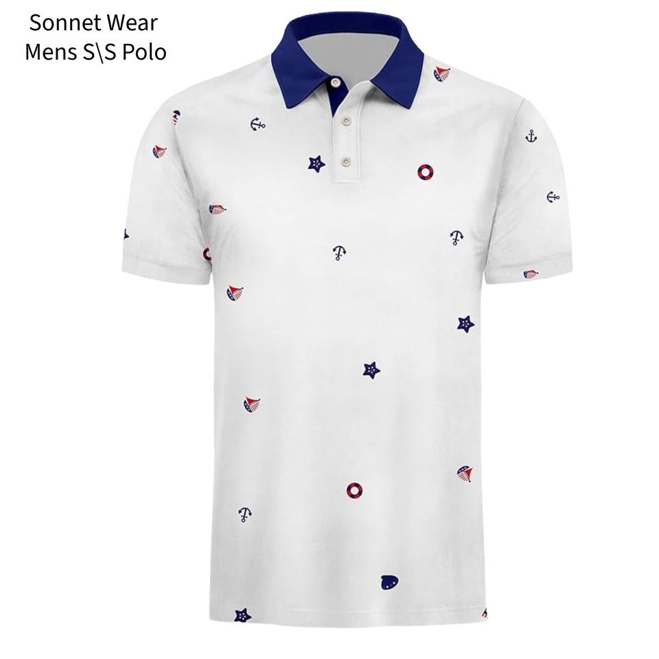 เสื้อโปโลแขนสั้นผู้ชายลายกราฟิกพิมพ์ลาย