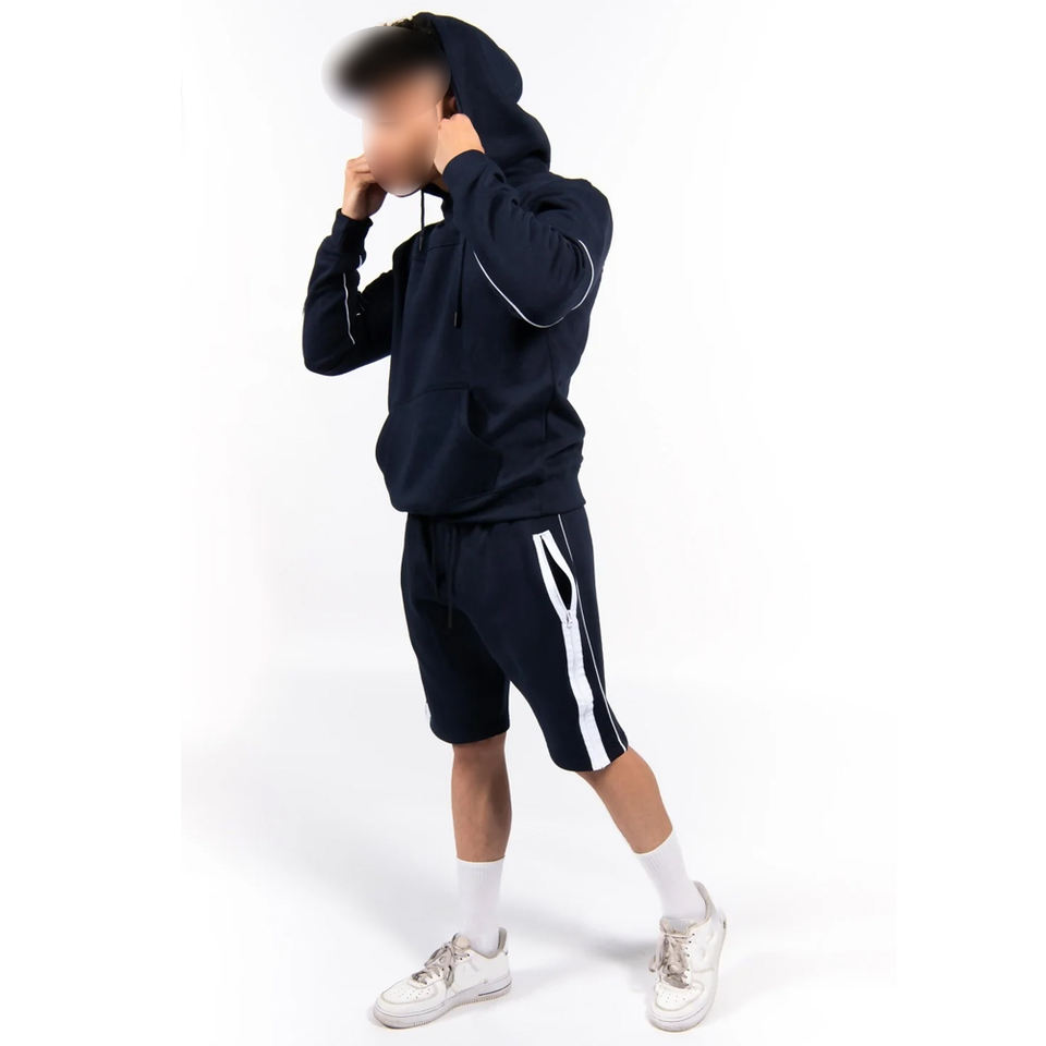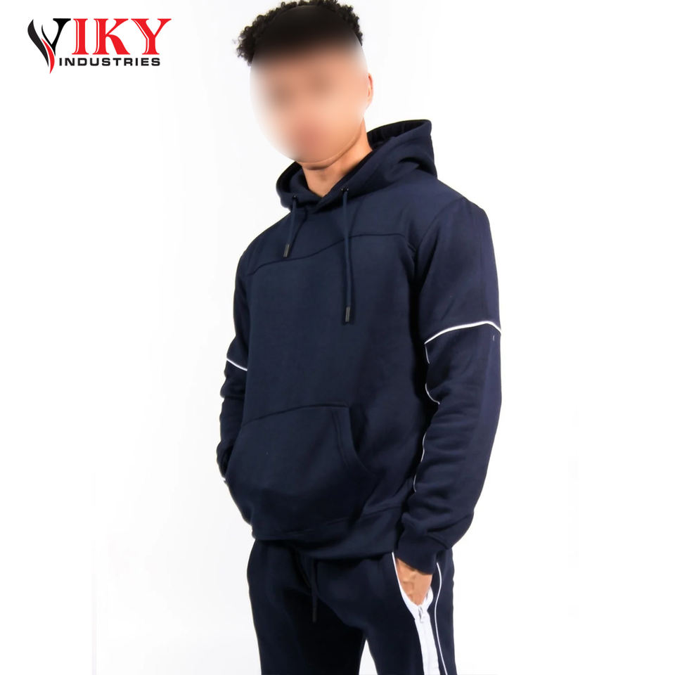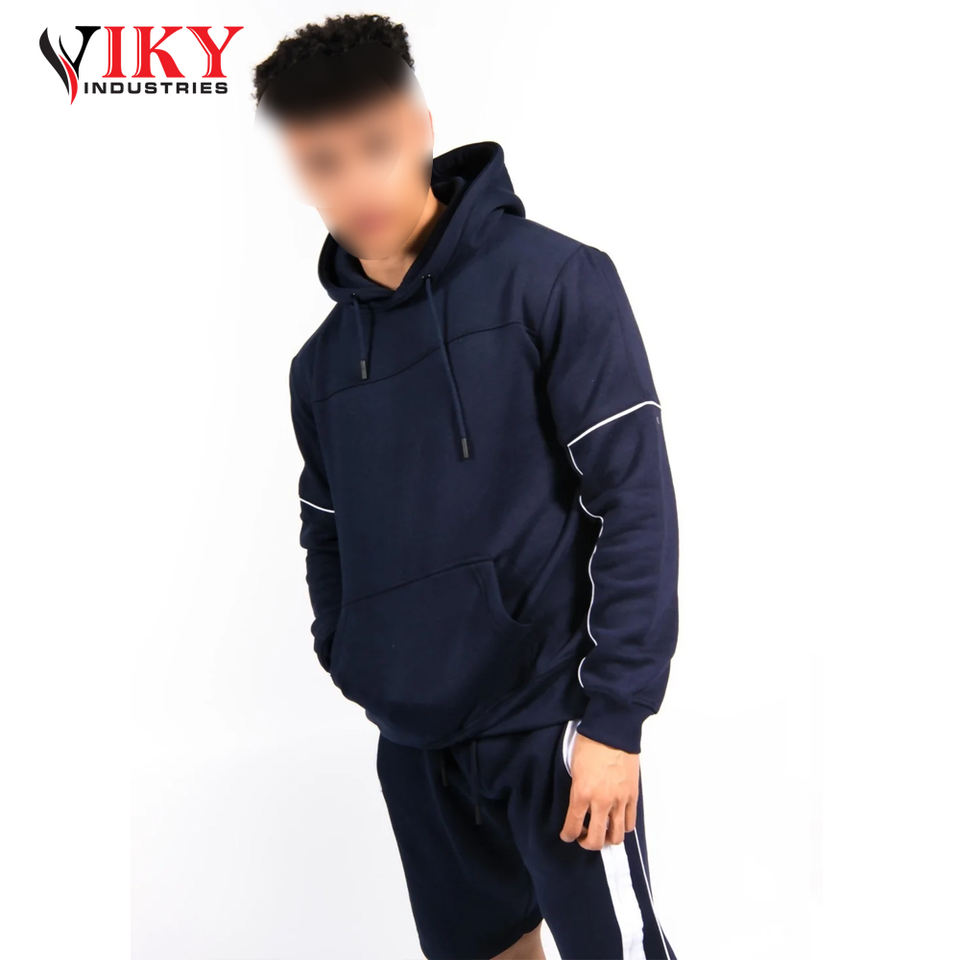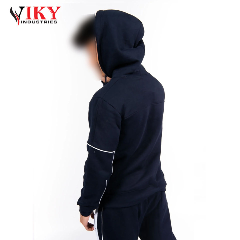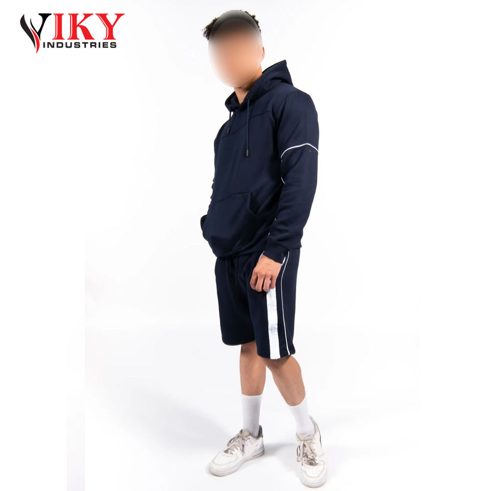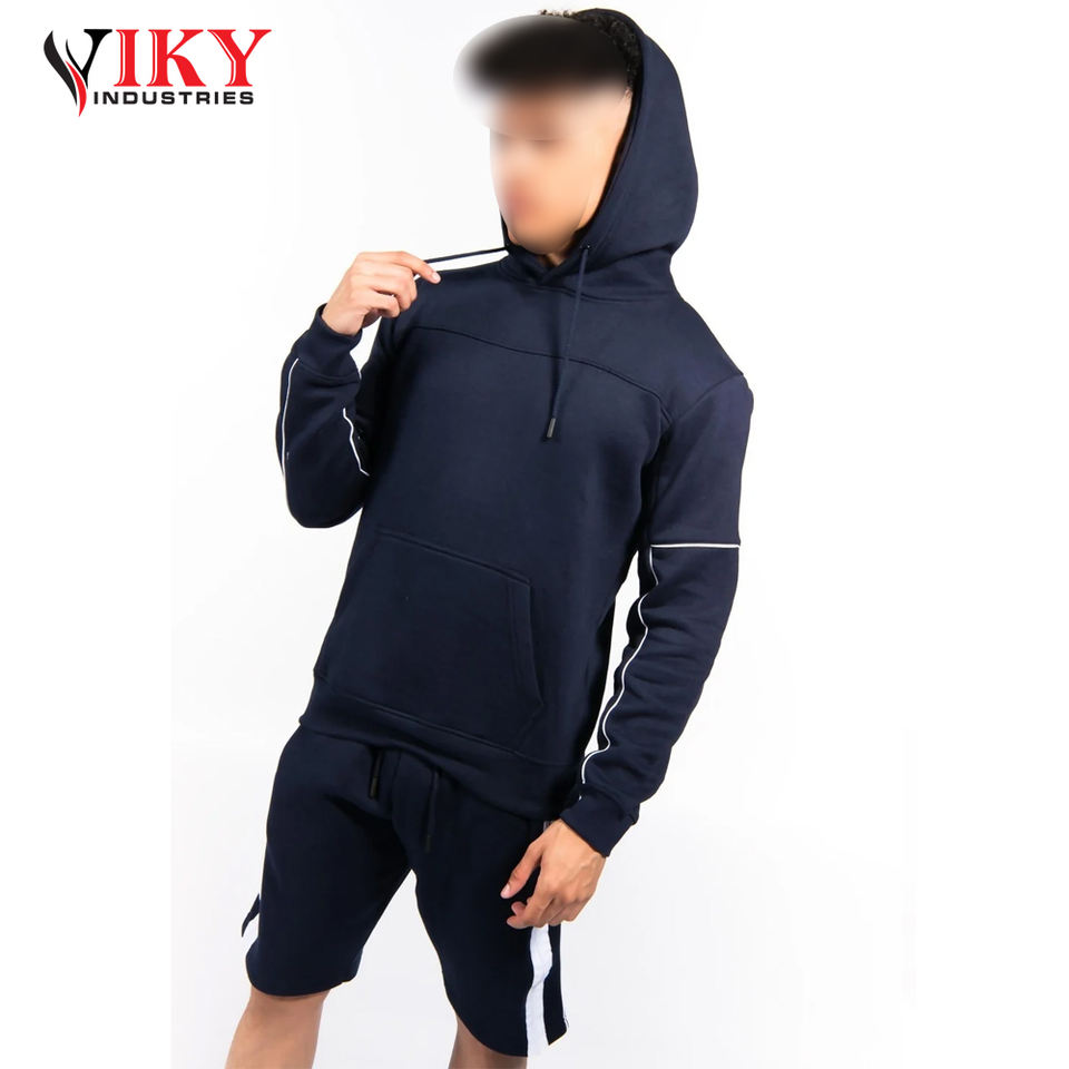 ชุดเสื้อฮู้ดแขนสั้นสำหรับผู้ชายชุดเสื้อฮู้ดแขนยาวลายแถบสีขาวสำหรับผู้ชายพิมพ์โลโก้ตามสั่งโดย viky Industries