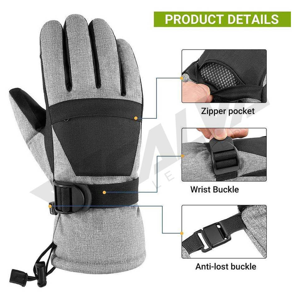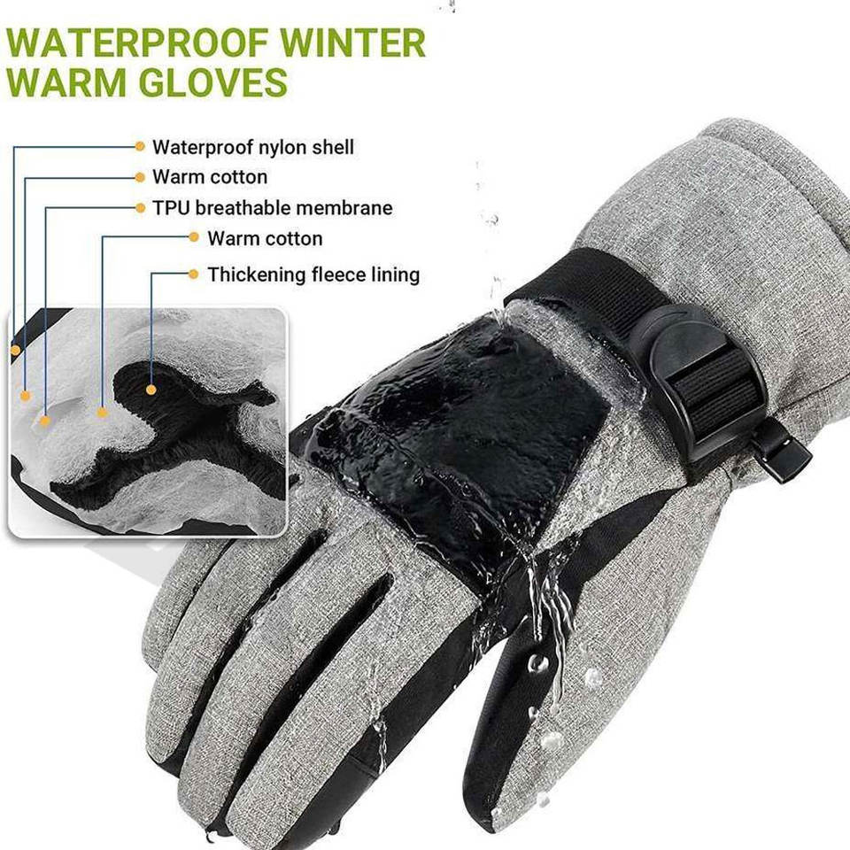 ถุงมือสกีสำหรับผู้ชาย ถุงมือกันน้ำและระบายอากาศได้ดีสำหรับเล่นสโนว์บอร์ดและขับขี่สโนว์โมบิลในสภาพอากาศหนาวเย็น